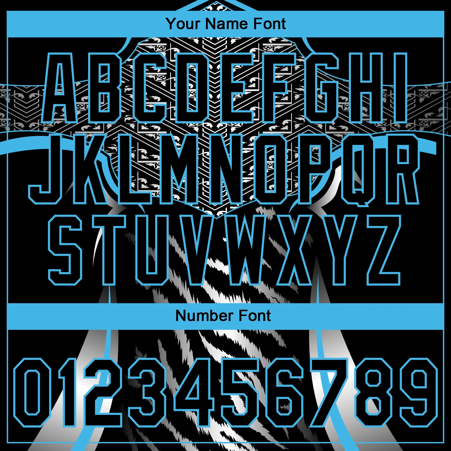 Custom Stitched Black Sky Blue-White 3D Pattern Design E-sports Pullover Sweatshirt Hoodie