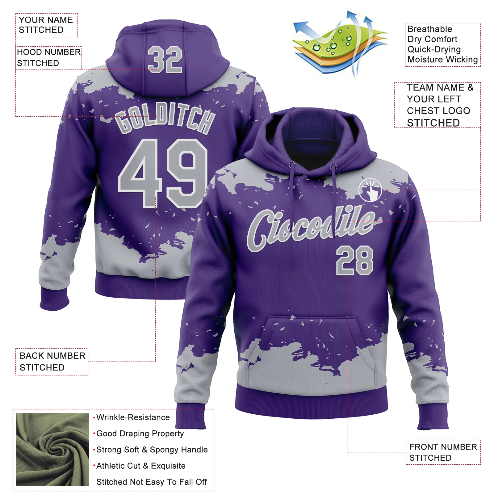 Custom Stitched Purple Gray-White 3D Pattern Design Fragment Sports Pullover Sweatshirt Hoodie