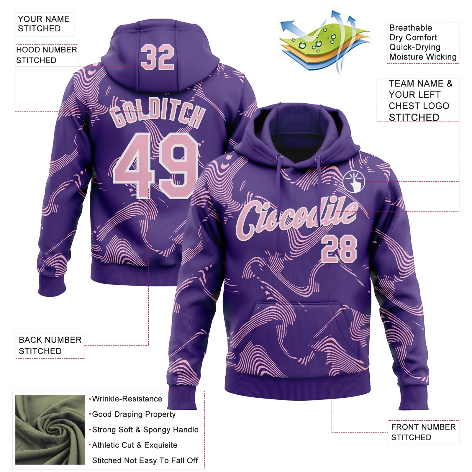 Custom Stitched Purple Light Pink-White 3D Pattern Design Curve Lines Sports Pullover Sweatshirt Hoodie