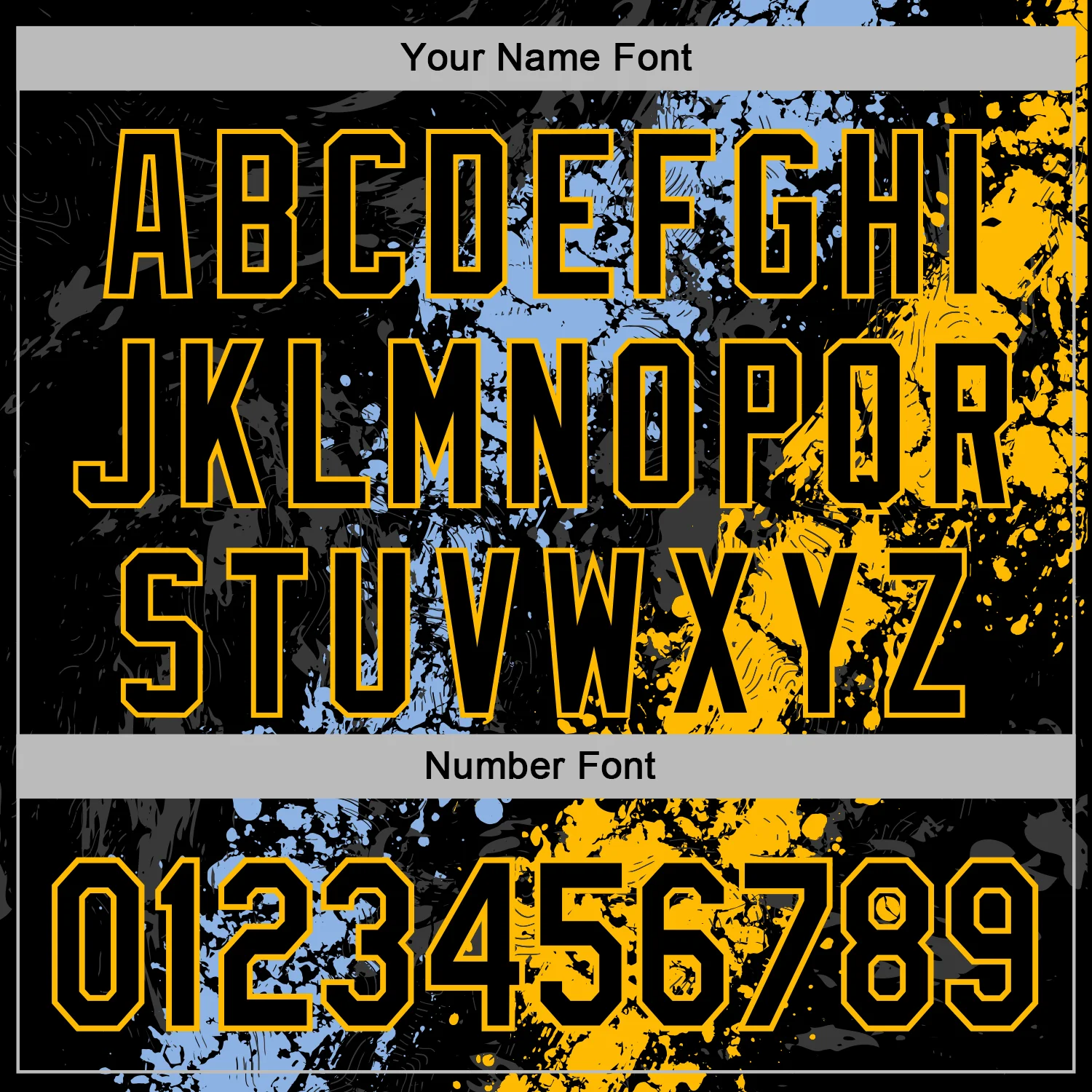 Custom Stitched Black Light Blue-Gold 3D Pattern Design Splash Sports Pullover Sweatshirt Hoodie
