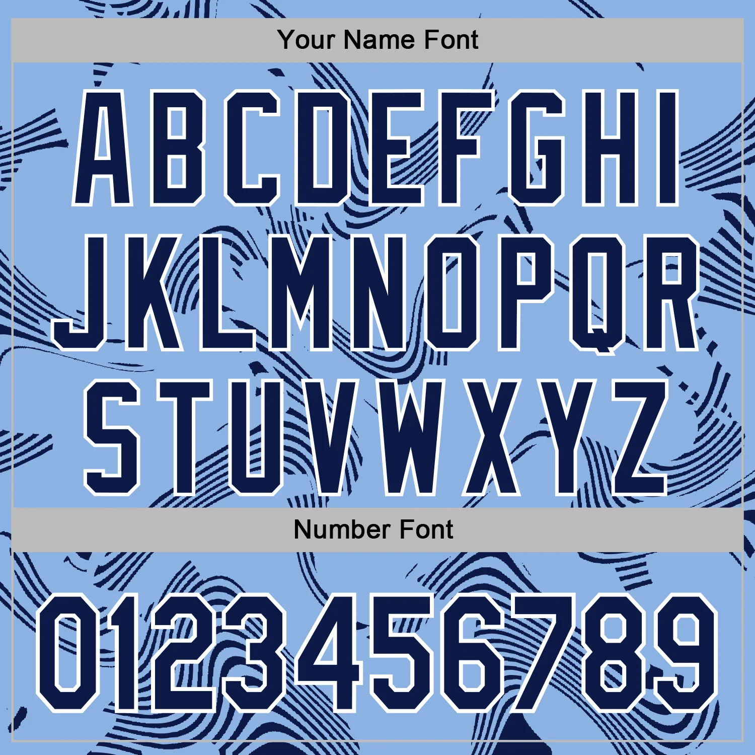 Custom Stitched Light Blue Navy-White 3D Pattern Design Curve Lines Sports Pullover Sweatshirt Hoodie