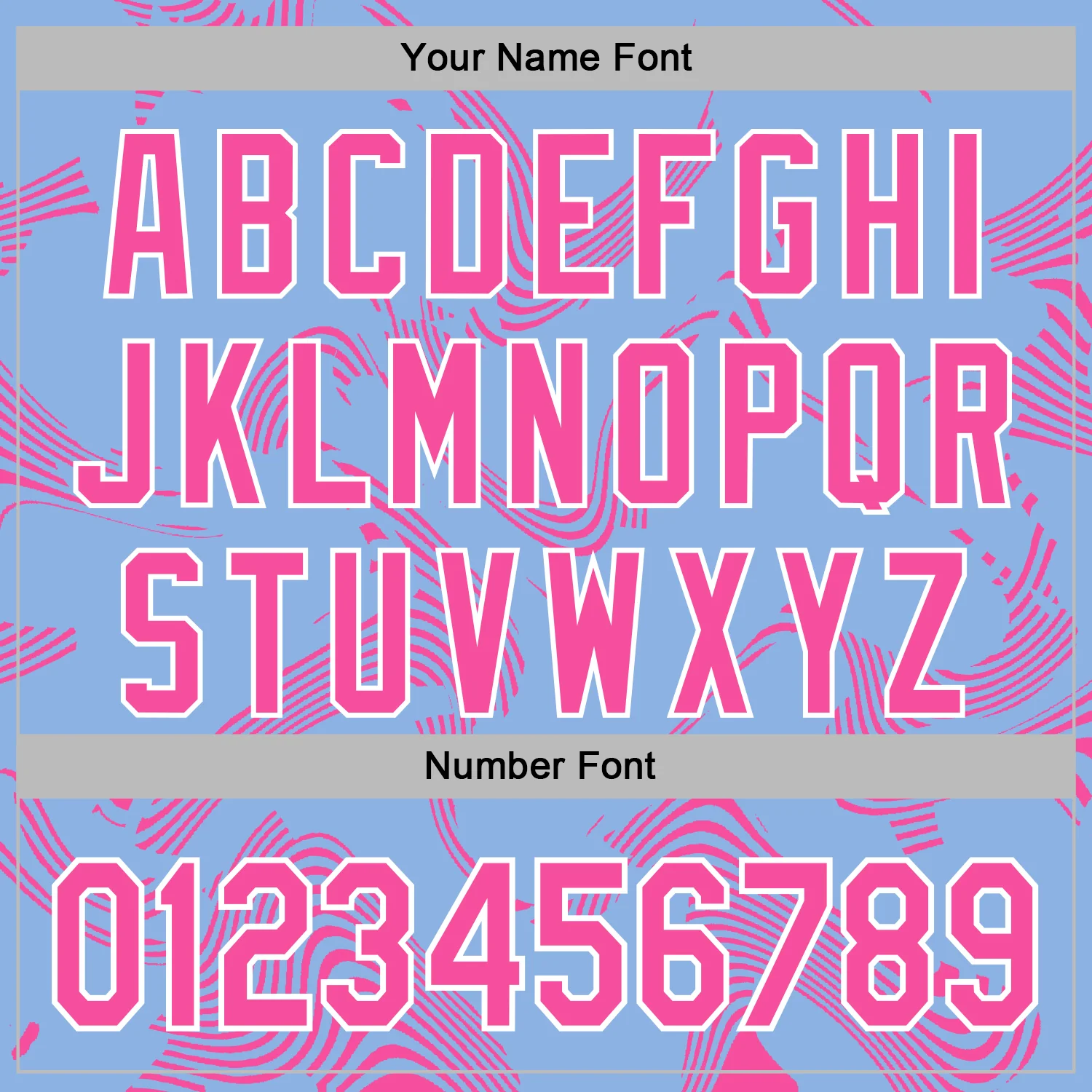 Custom Stitched Light Blue Pink-White 3D Pattern Design Curve Lines Sports Pullover Sweatshirt Hoodie