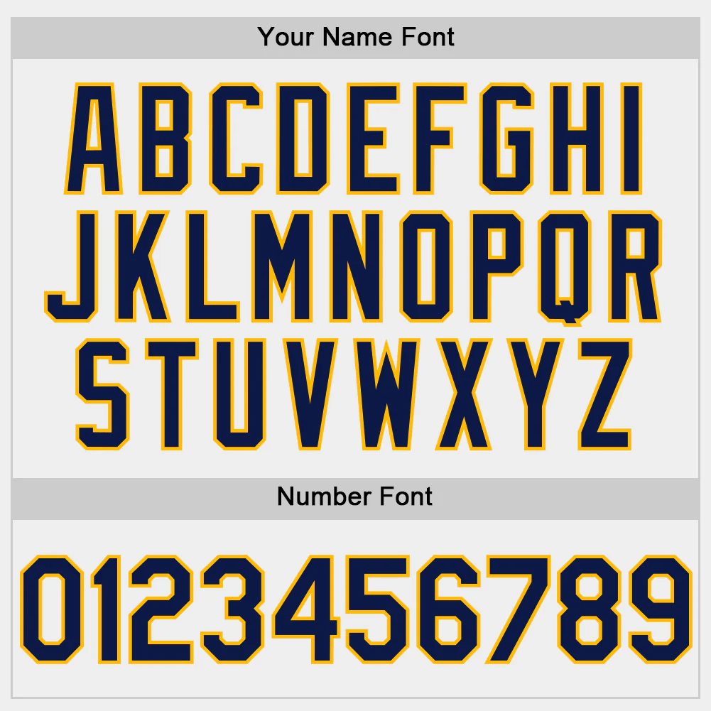 Custom White Navy-Gold Bomber Full-Snap Varsity Letterman Two Tone Hoodie Jacket