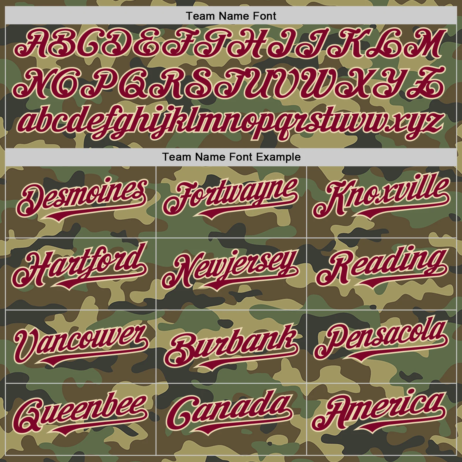 Custom Camo Maroon-Cream Bomber Full-Snap Varsity Letterman Salute To Service Hoodie Jacket
