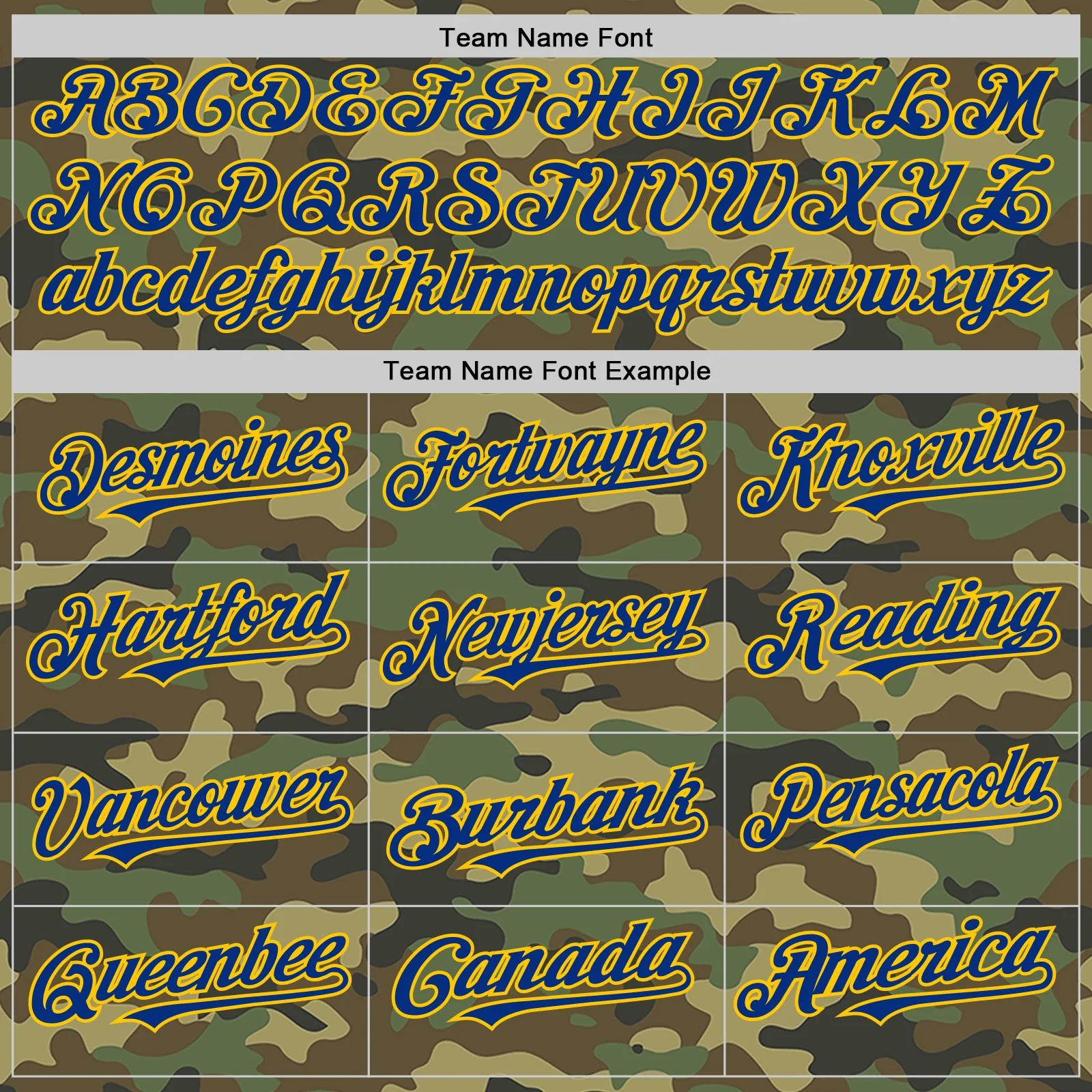 Custom Camo Royal-Yellow Bomber Full-Snap Varsity Letterman Salute To Service Hoodie Jacket