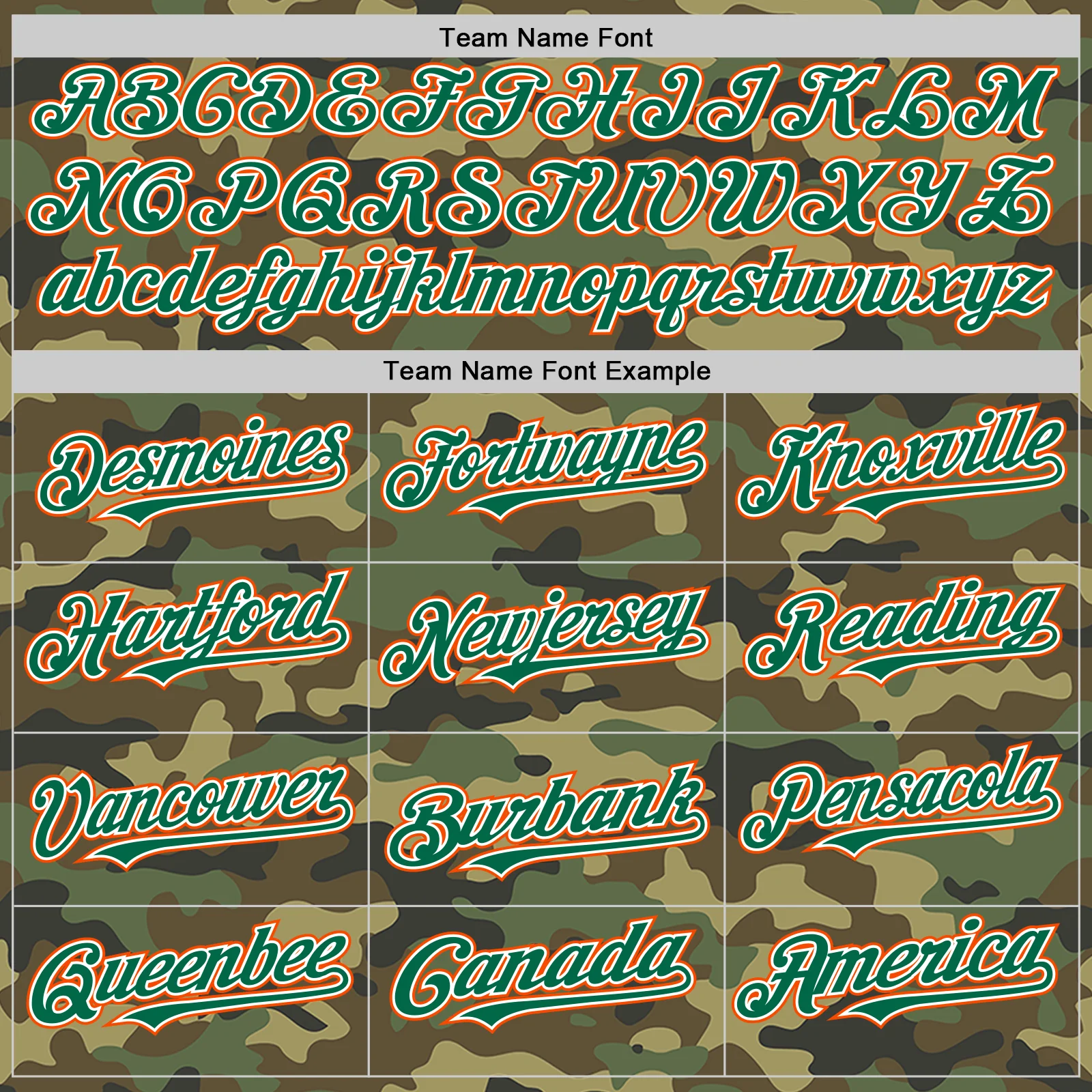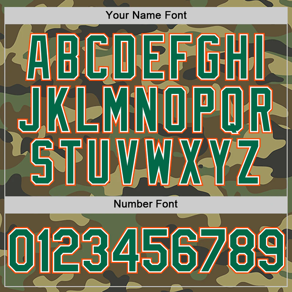Custom Camo Kelly Green-Orange Bomber Full-Snap Varsity Letterman Salute To Service Hoodie Jacket