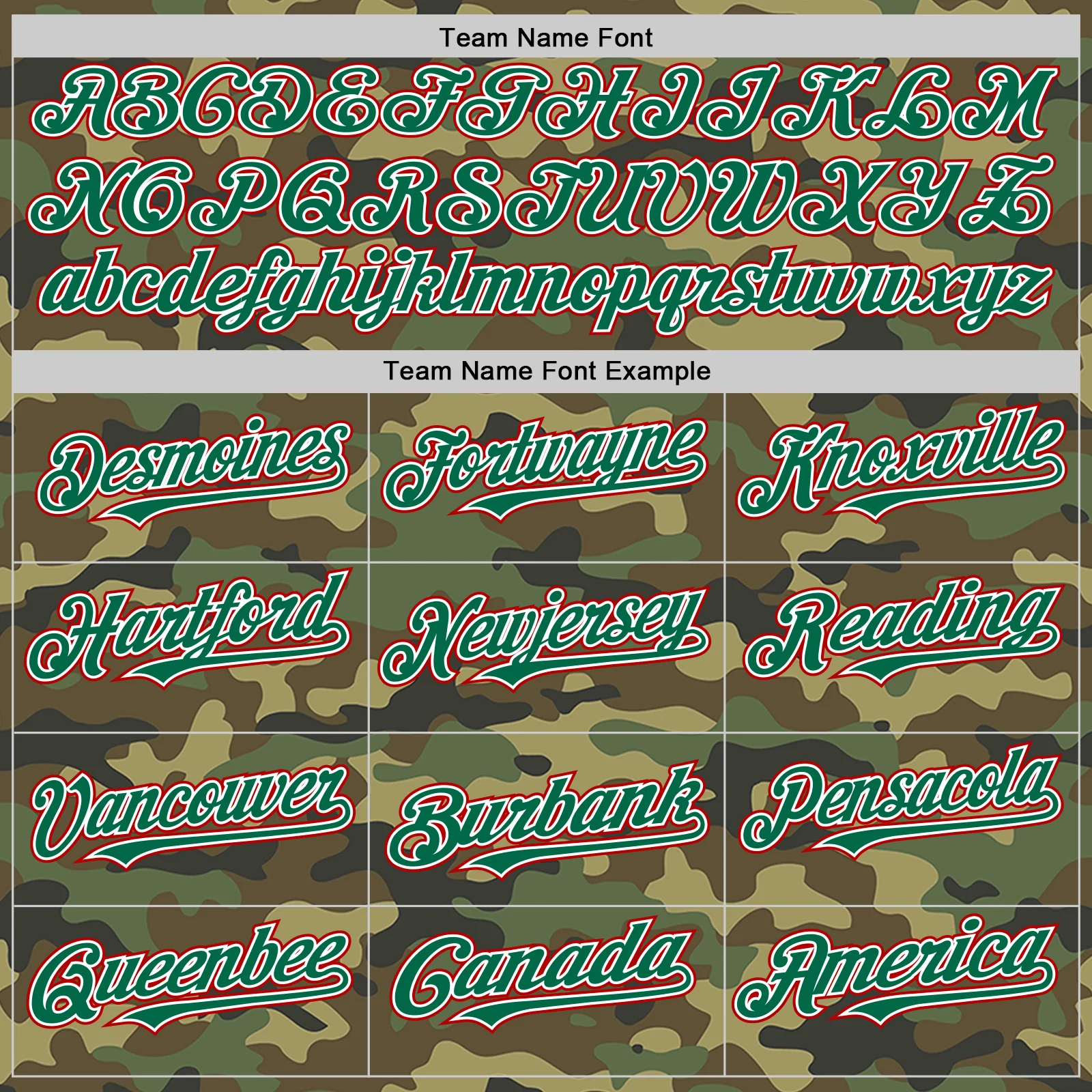 Custom Camo Kelly Green-Red Bomber Full-Snap Varsity Letterman Salute To Service Hoodie Jacket