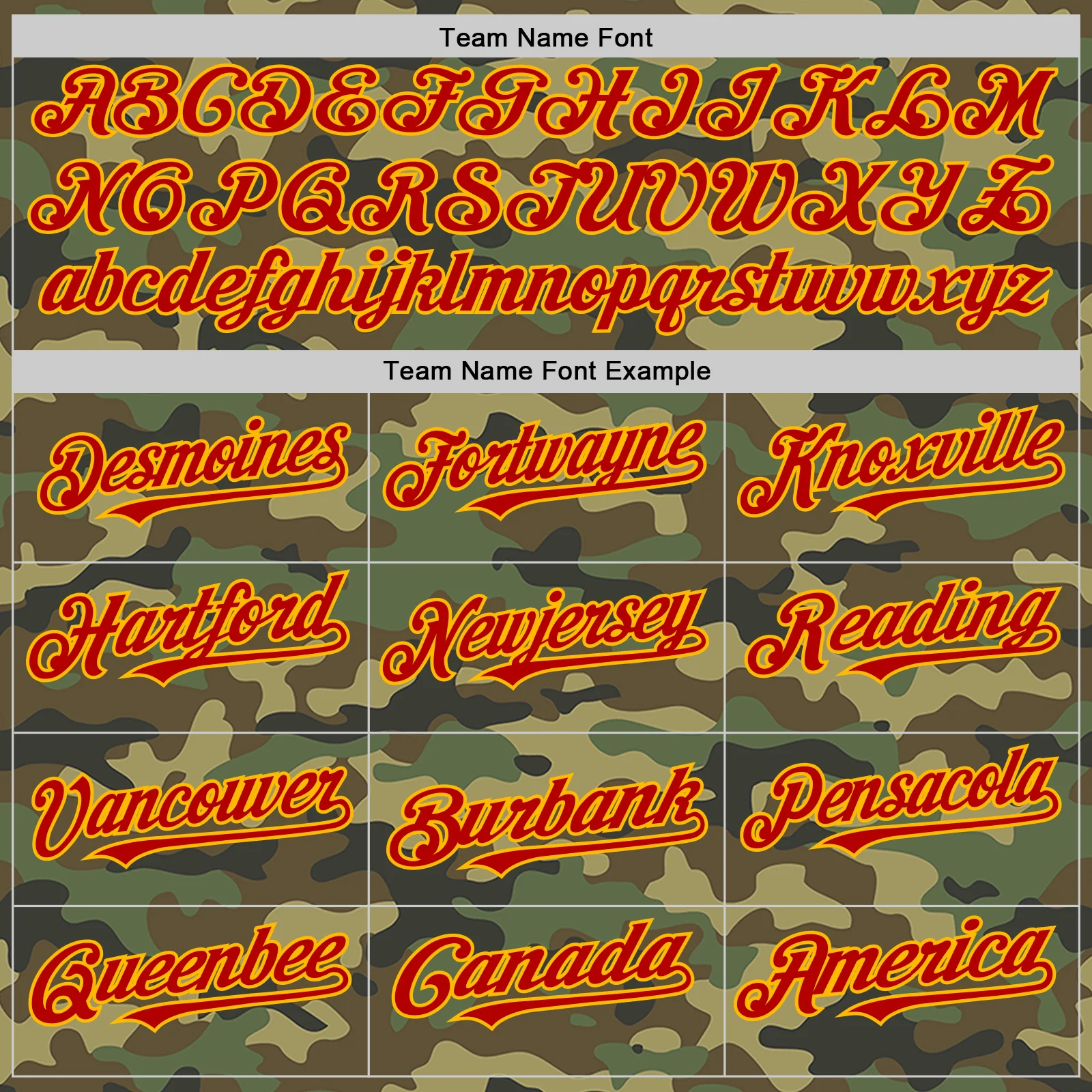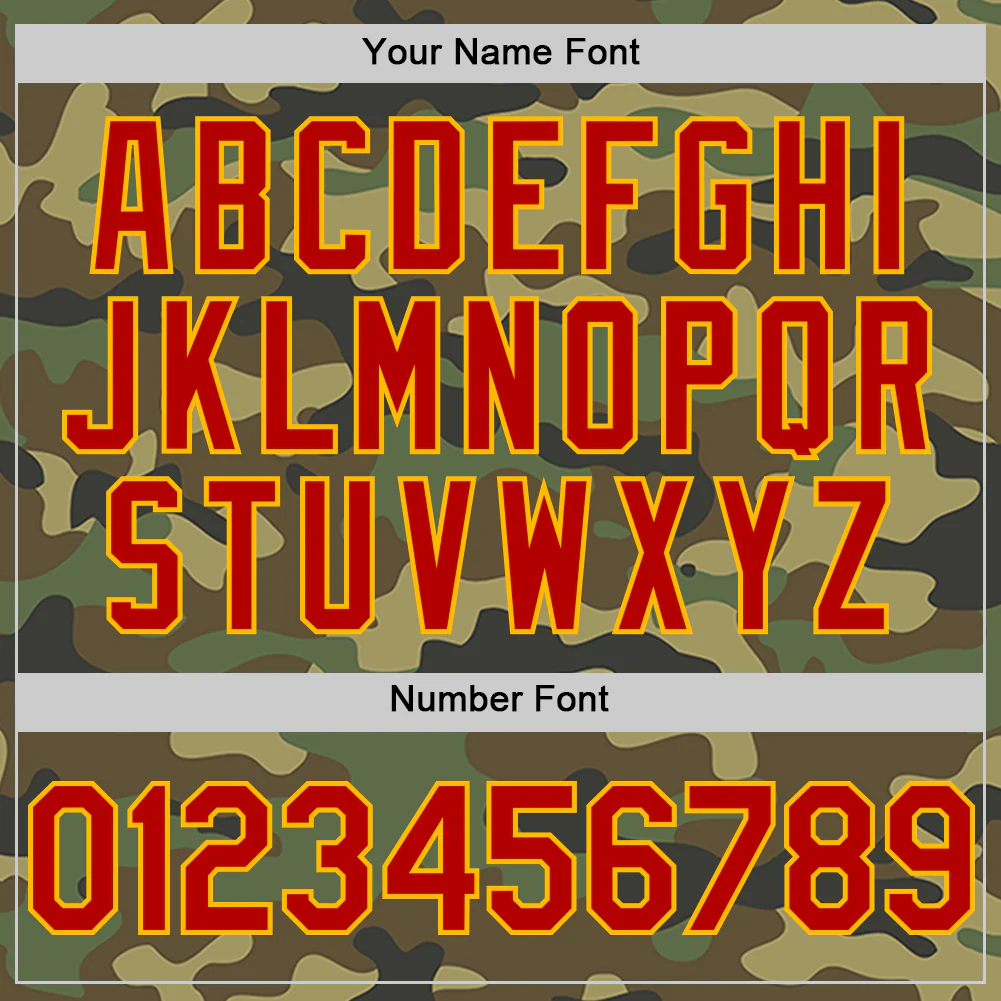 Custom Camo Red-Gold Bomber Full-Snap Varsity Letterman Salute To Service Hoodie Jacket