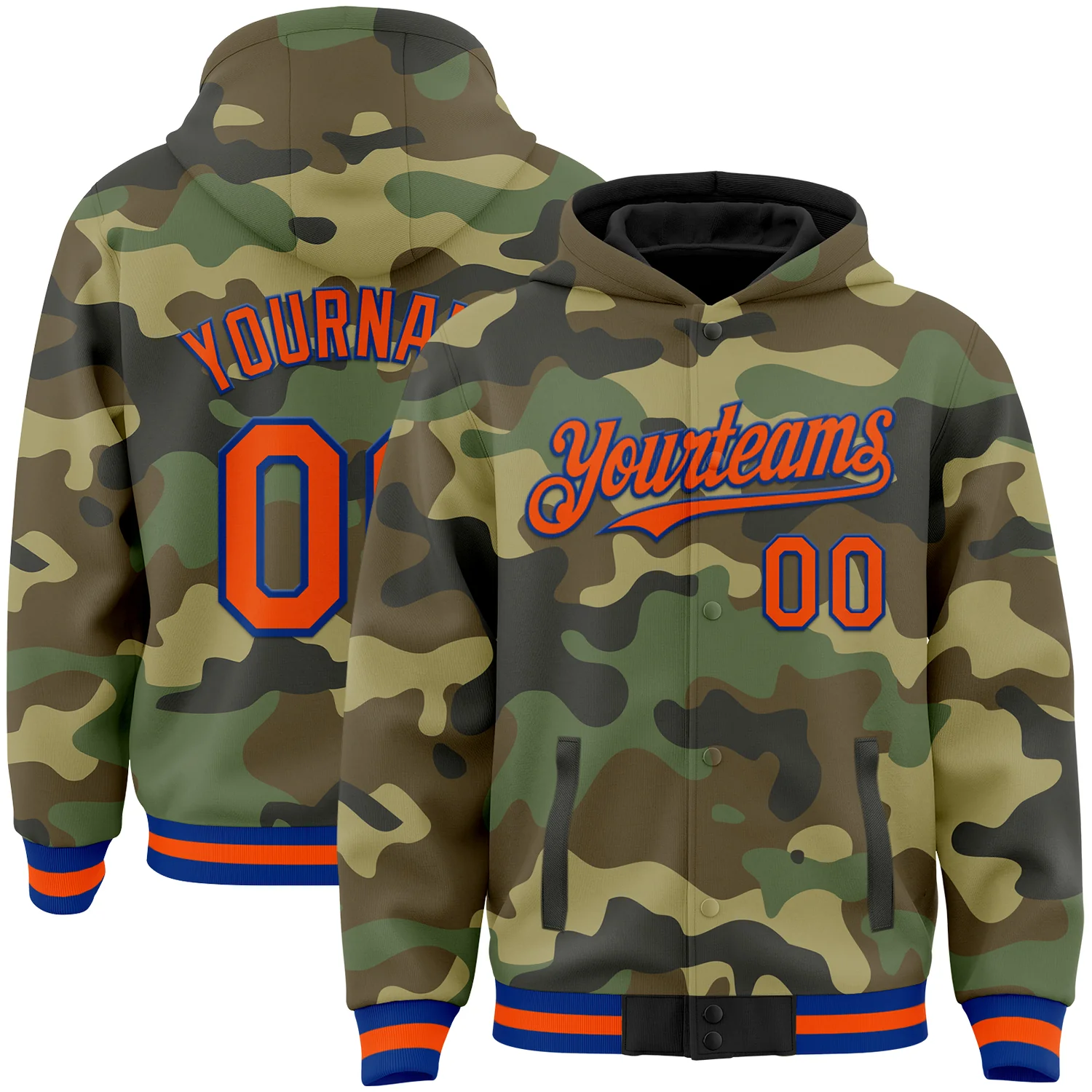 Custom Camo Orange-Royal Bomber Full-Snap Varsity Letterman Salute To Service Hoodie Jacket