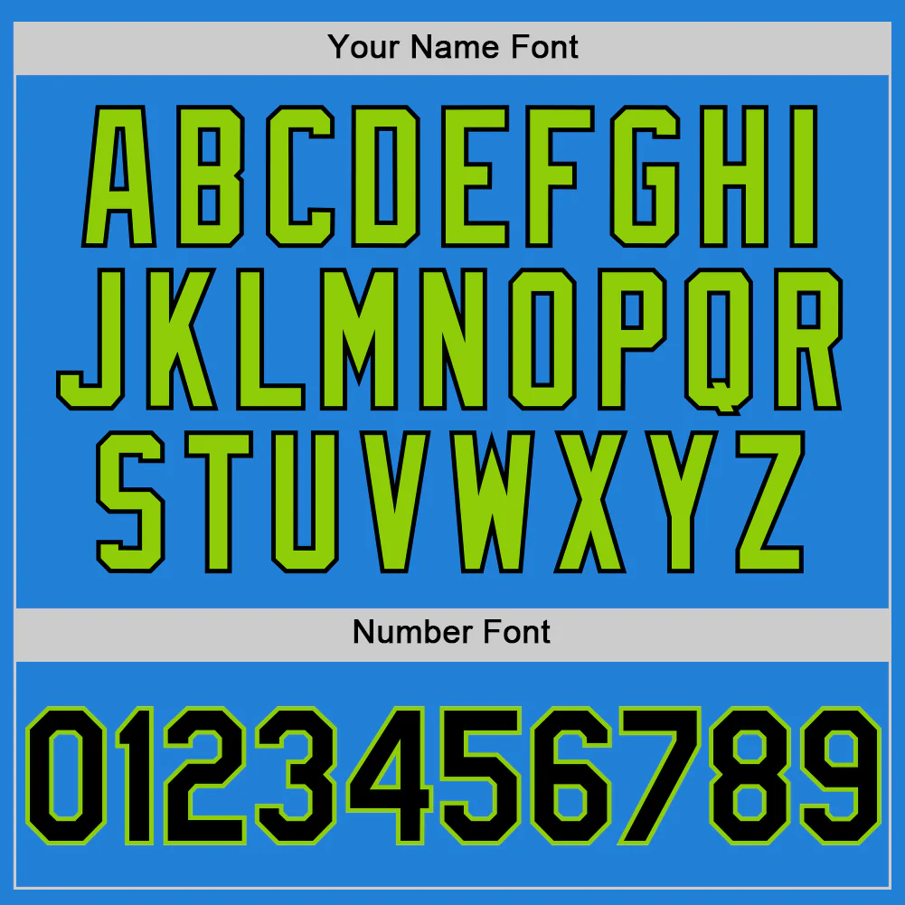 Custom Powder Blue Black-Neon Green Bomber Full-Snap Varsity Letterman Two Tone Hoodie Jacket