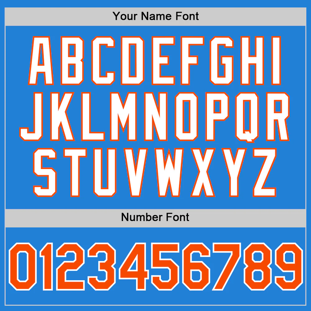 Custom Powder Blue Orange-White Bomber Full-Snap Varsity Letterman Two Tone Hoodie Jacket