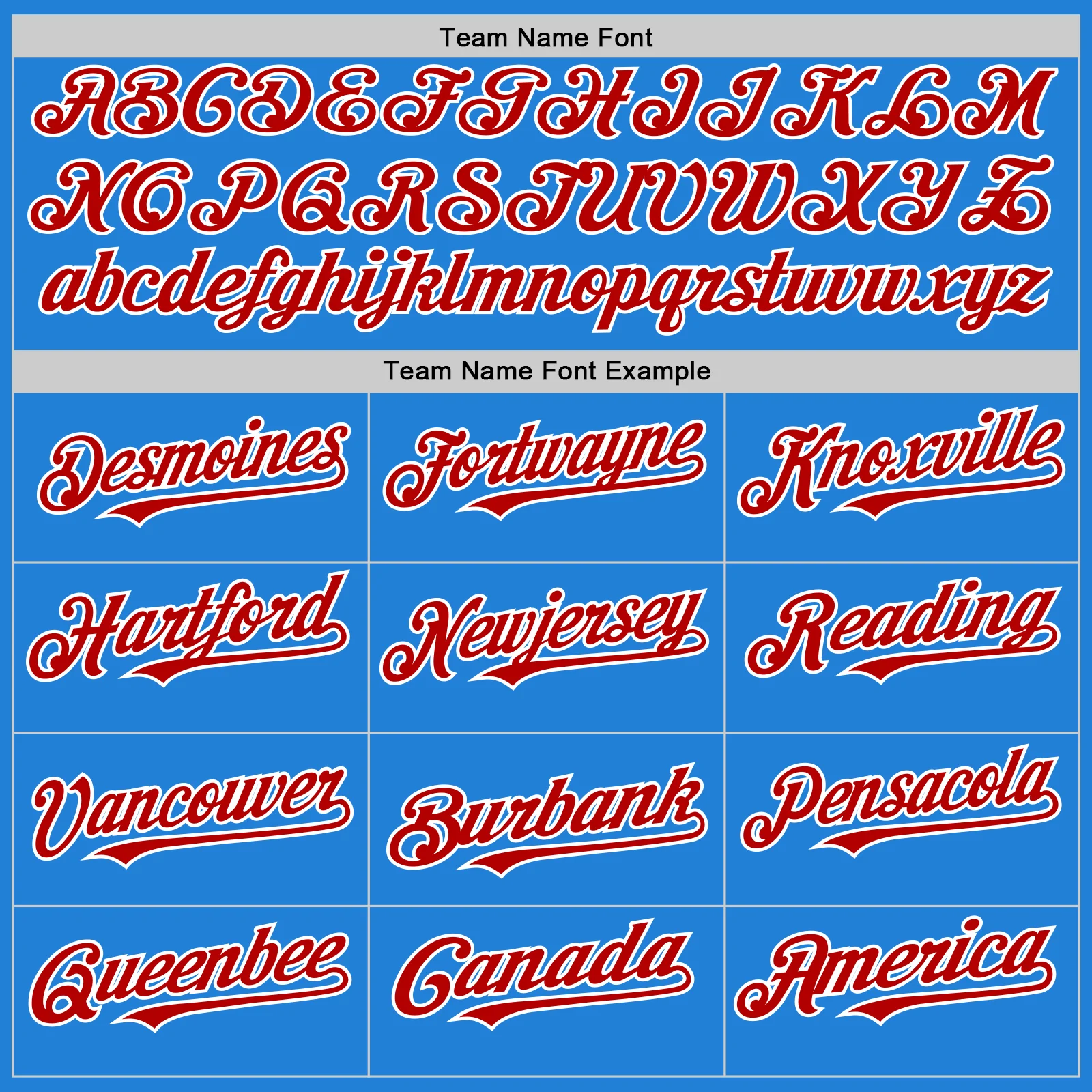 Custom Powder Blue Red-White Bomber Full-Snap Varsity Letterman Two Tone Hoodie Jacket