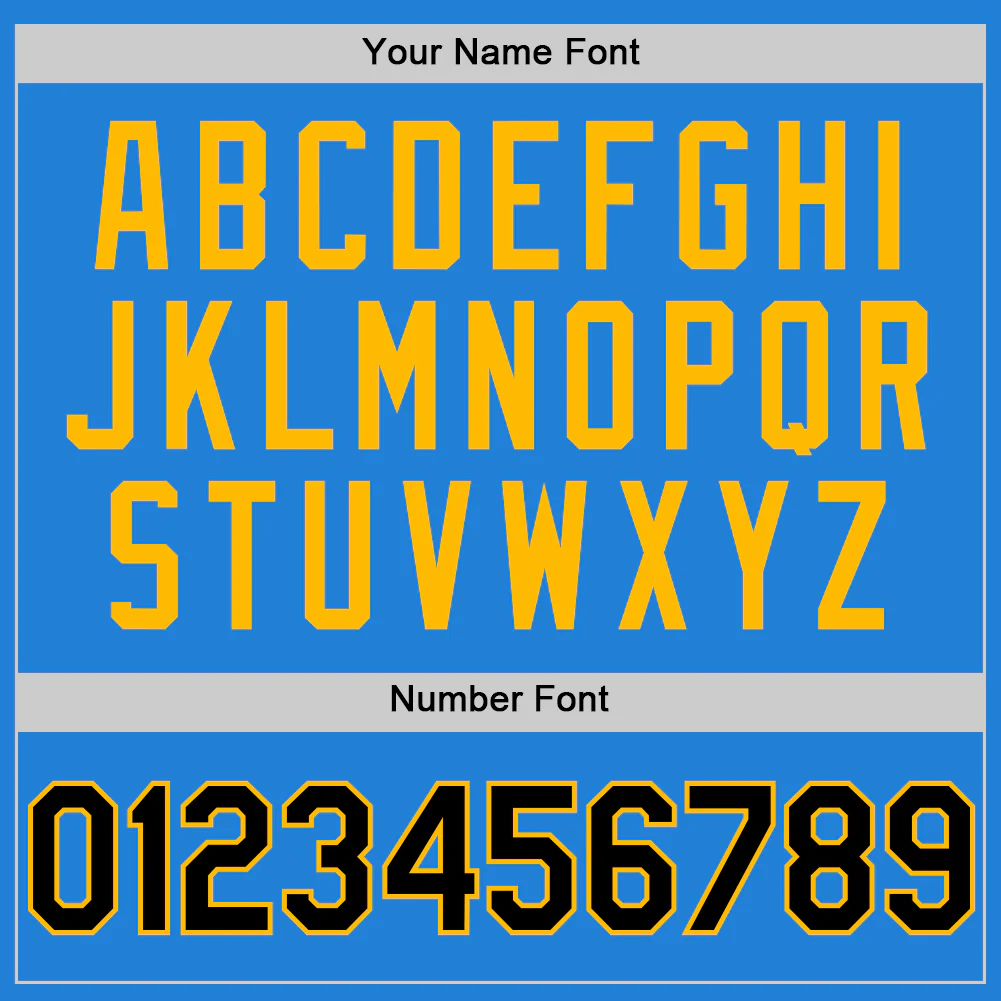 Custom Powder Blue Black-Gold Bomber Full-Snap Varsity Letterman Two Tone Hoodie Jacket