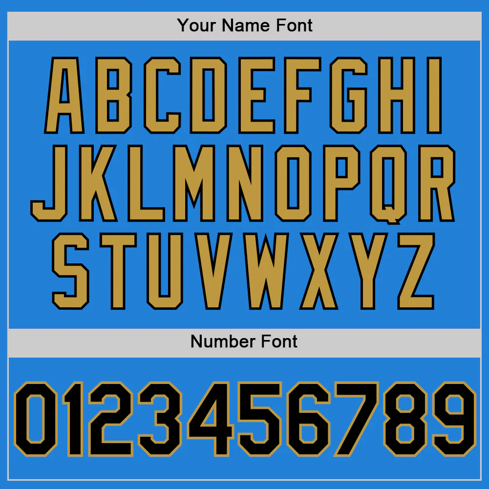 Custom Powder Blue Black-Old Gold Bomber Full-Snap Varsity Letterman Hoodie Jacket