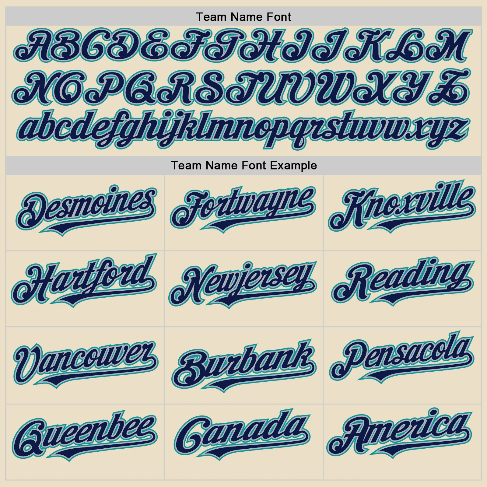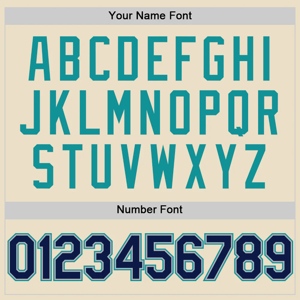Custom Cream Navy Gray-Teal Bomber Full-Snap Varsity Letterman Hoodie Jacket