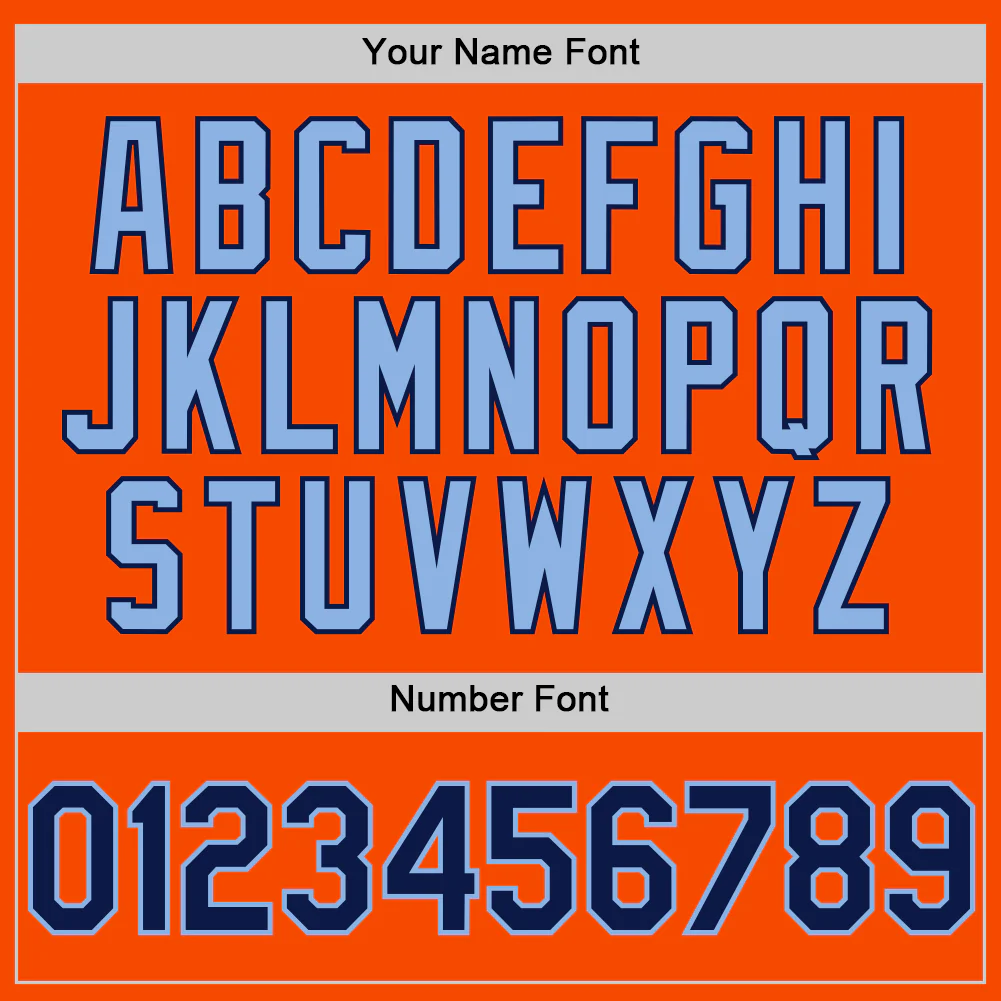 Custom Orange Navy-Light Blue Bomber Full-Snap Varsity Letterman Hoodie Jacket