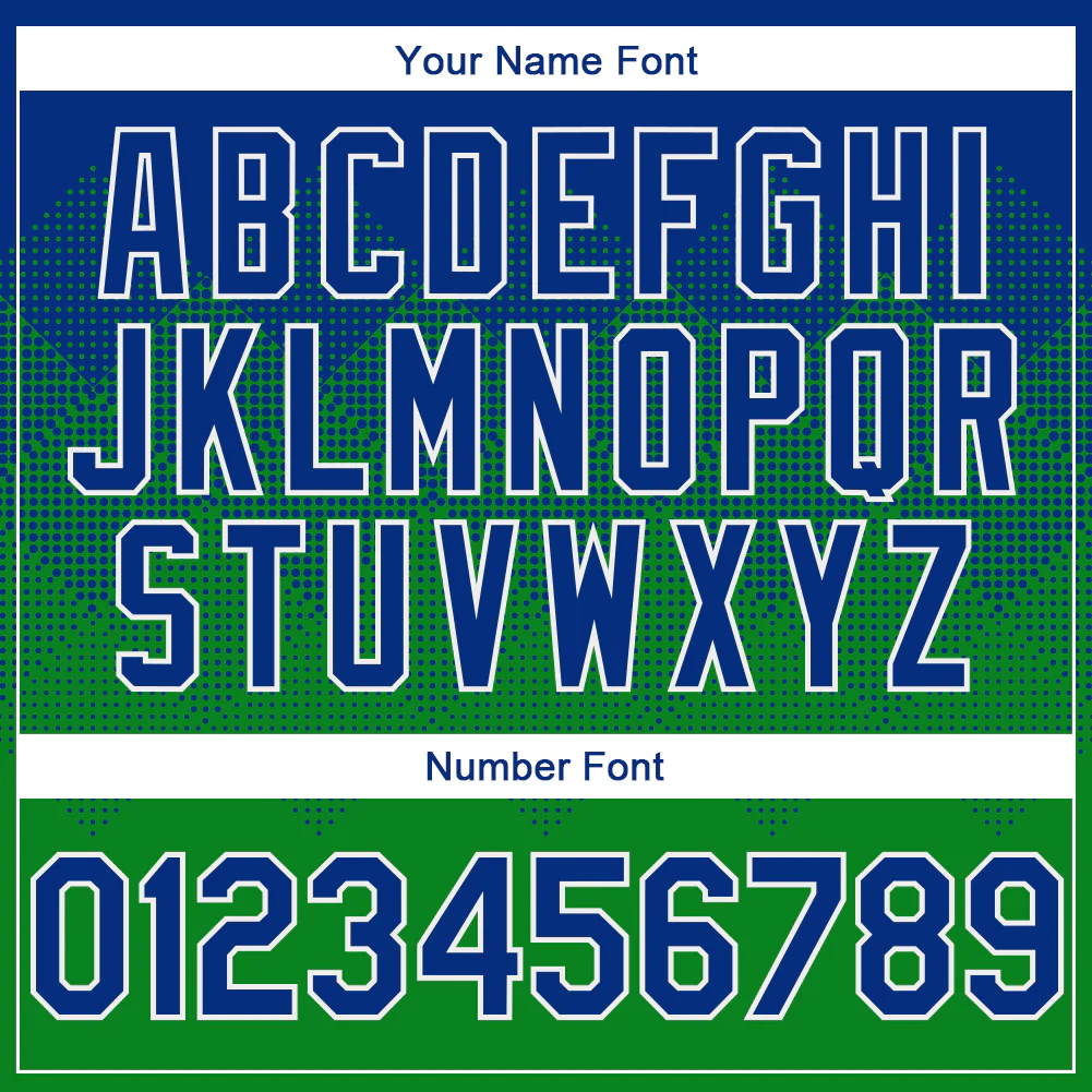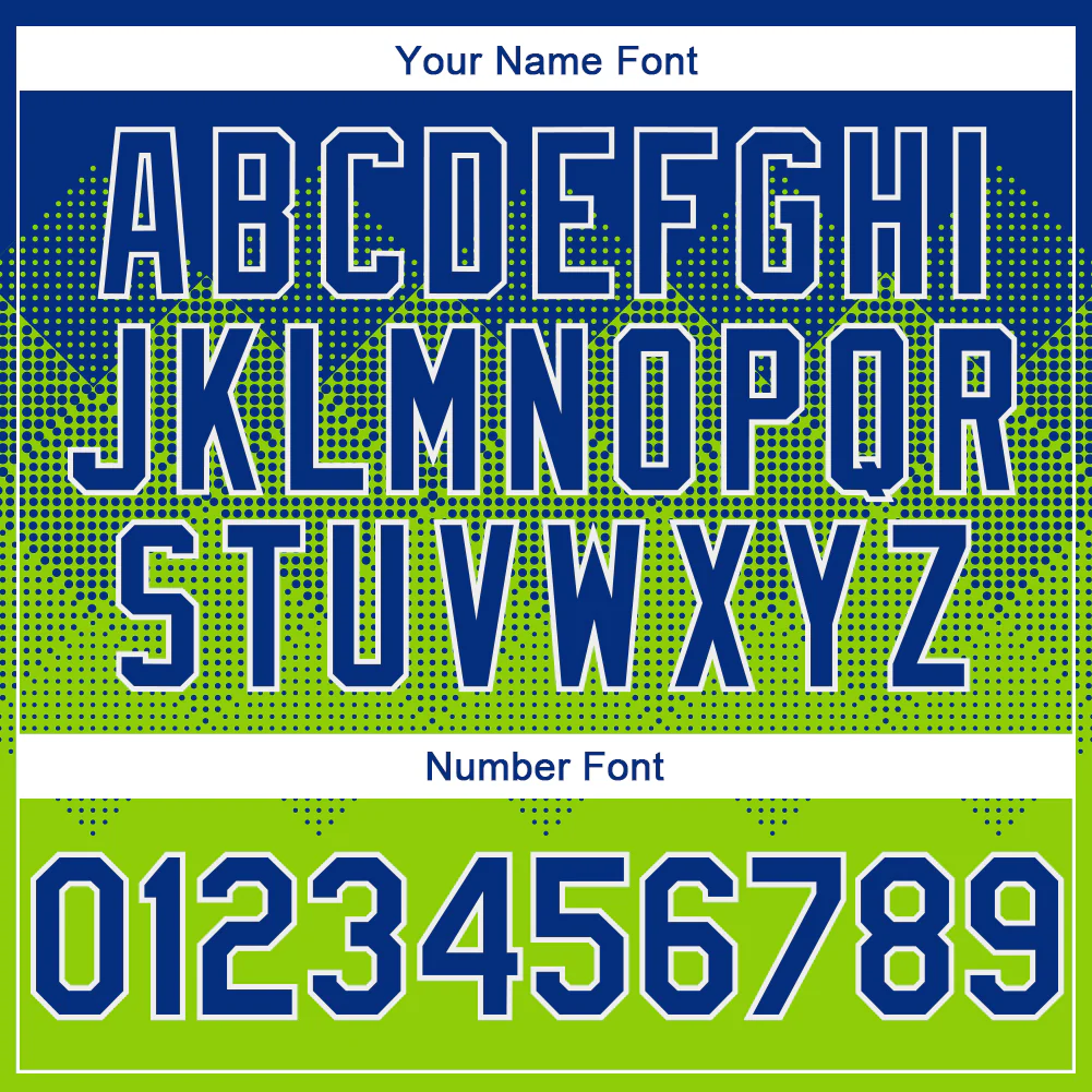 Custom Royal Neon Green-White Gradient Square Shape 3D Pattern Design Bomber Full-Snap Varsity Letterman Hoodie Jacket
