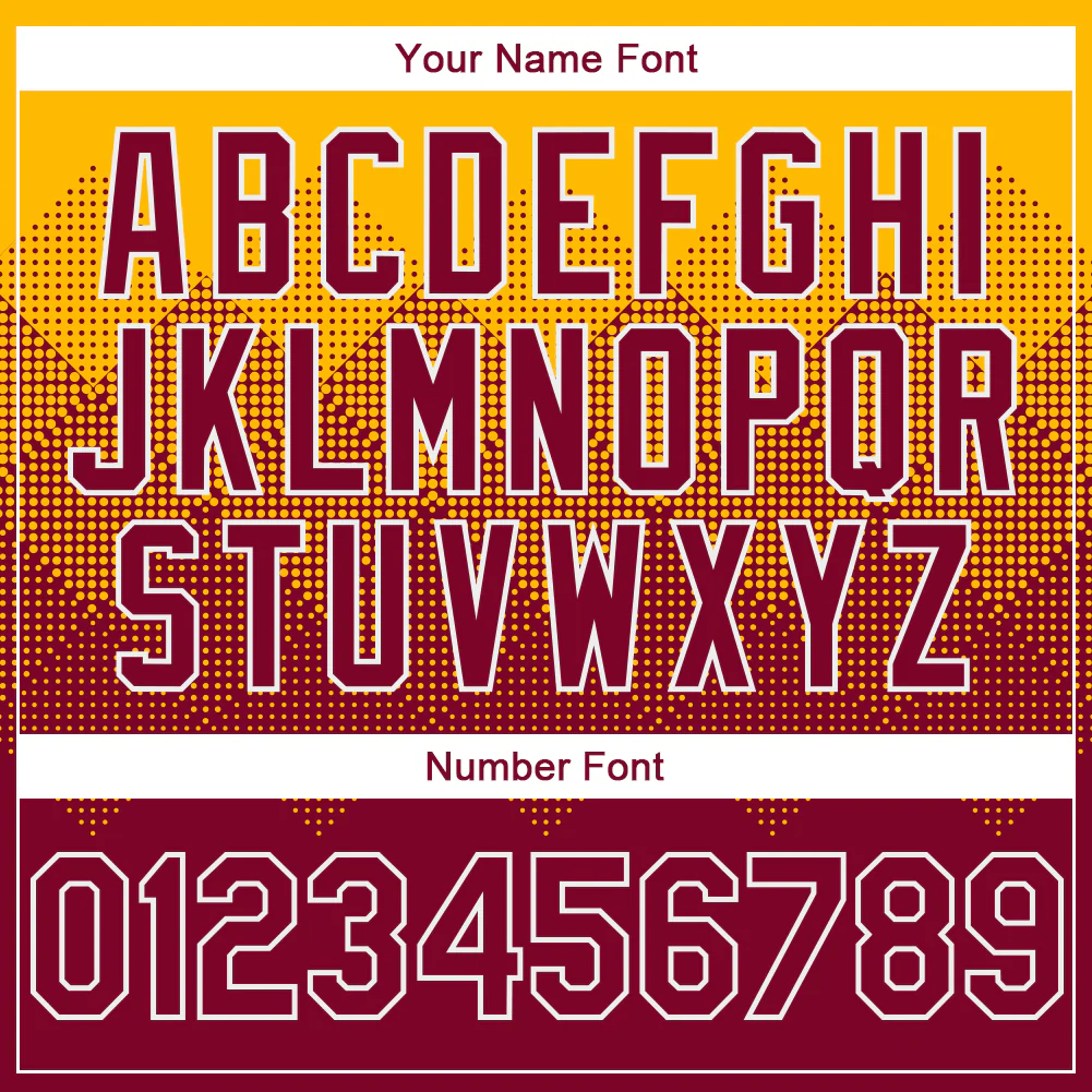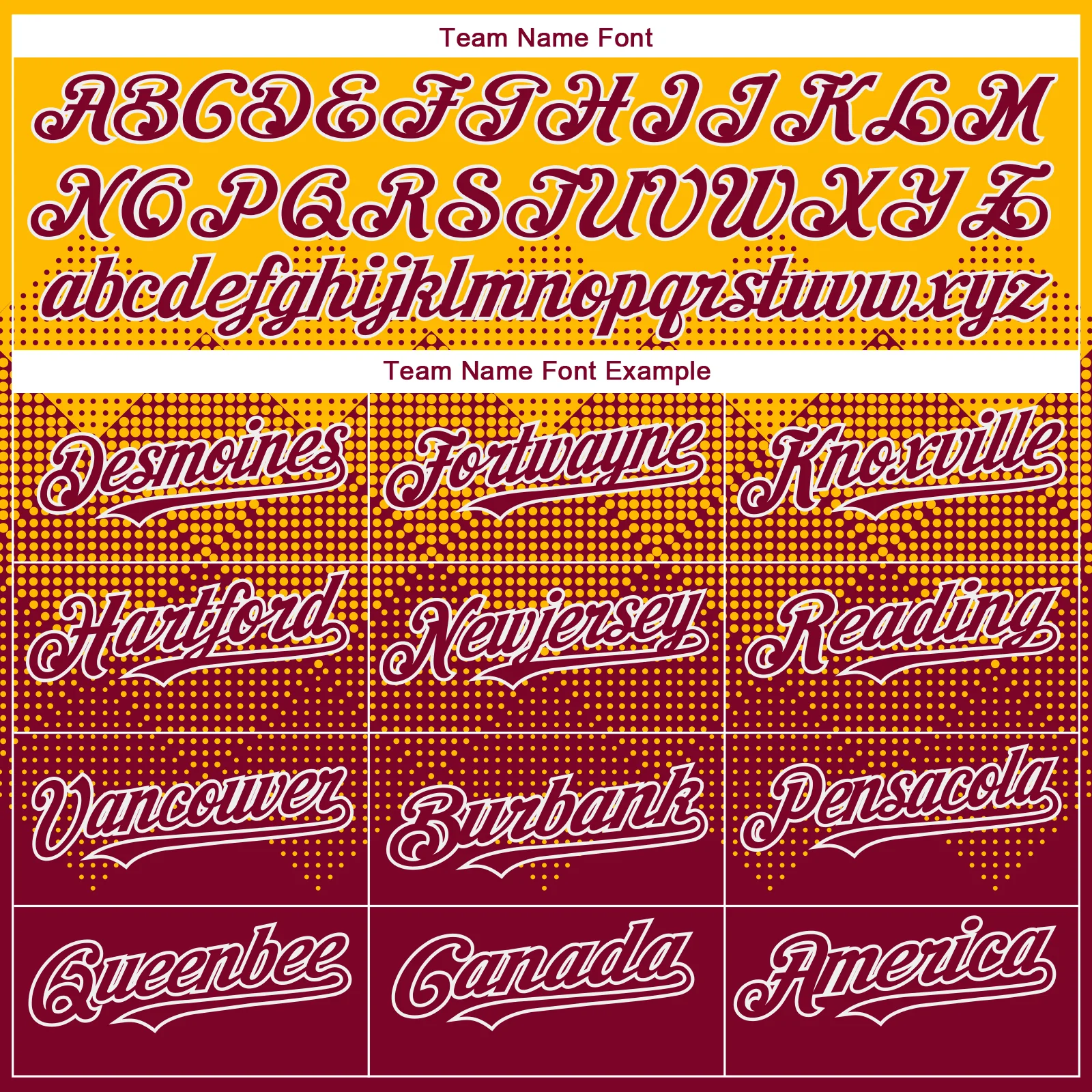 Custom Gold Maroon-White Gradient Square Shape 3D Pattern Design Bomber Full-Snap Varsity Letterman Hoodie Jacket