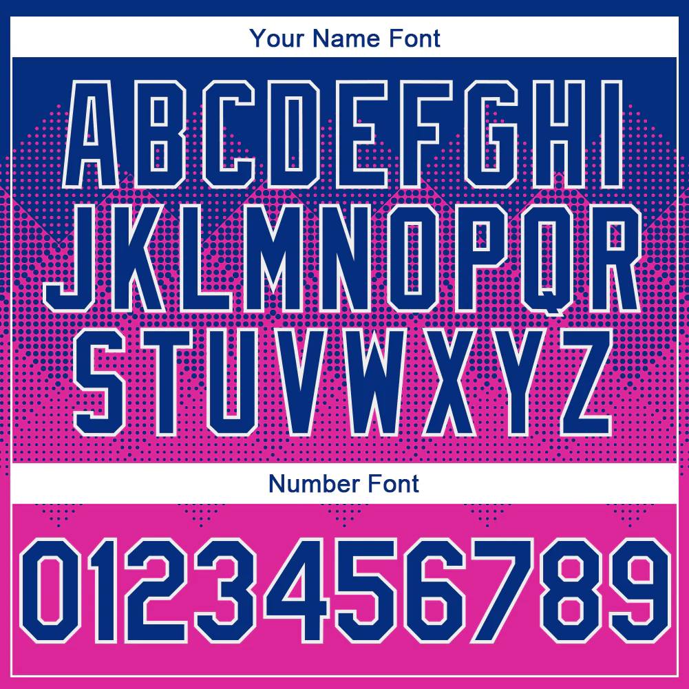 Custom Royal Deep Pink-White Gradient Square Shape 3D Pattern Design Bomber Full-Snap Varsity Letterman Hoodie Jacket
