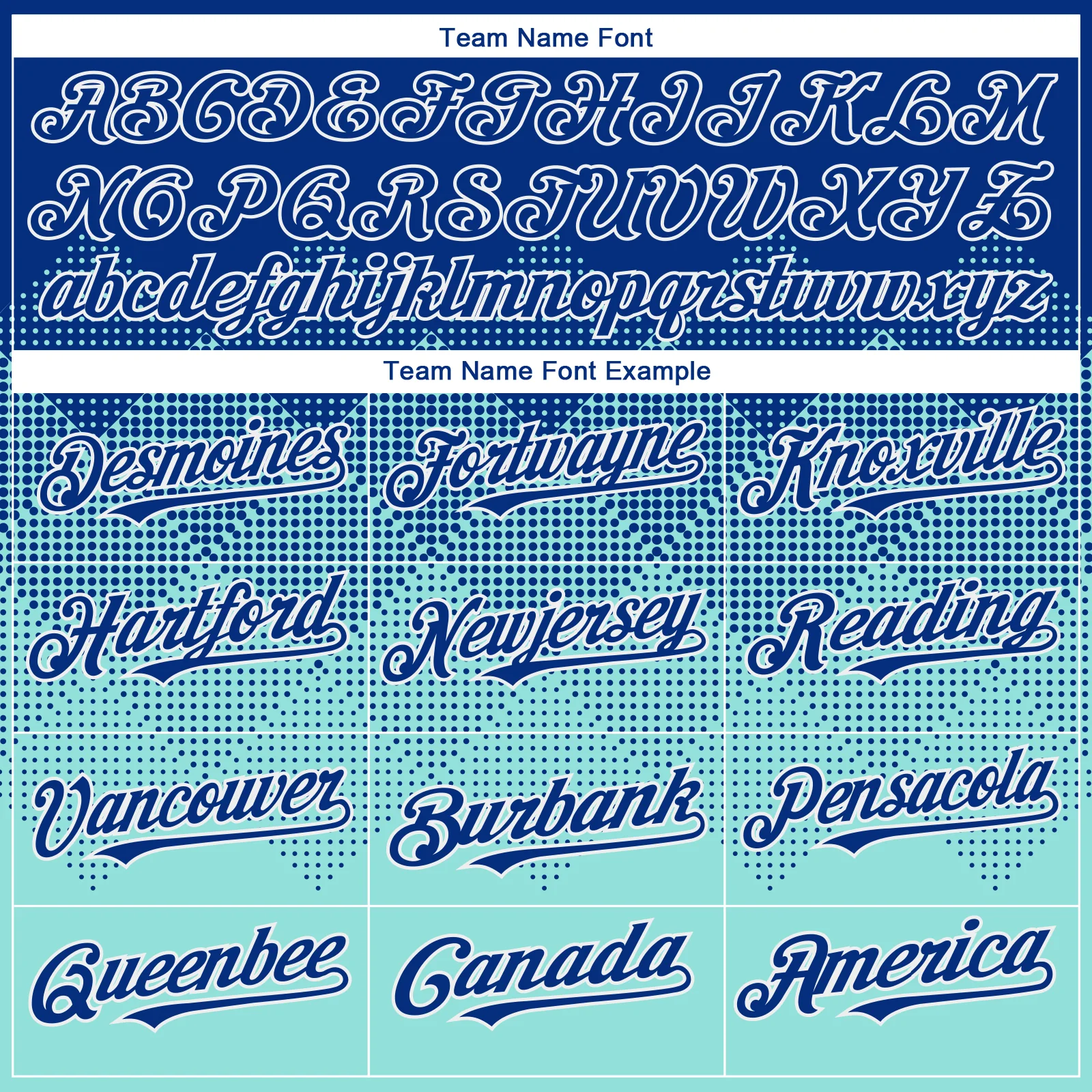 Custom Royal Ice Blue-White Gradient Square Shape 3D Pattern Design Bomber Full-Snap Varsity Letterman Hoodie Jacket
