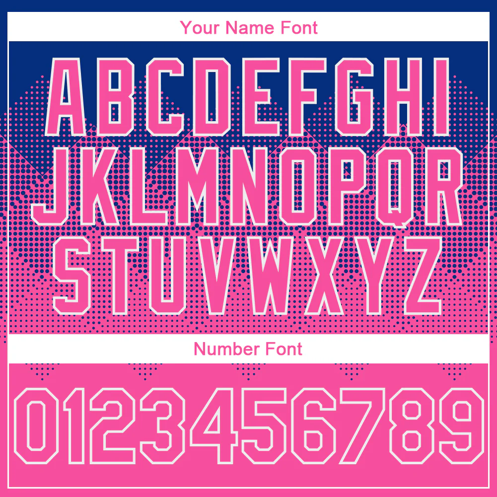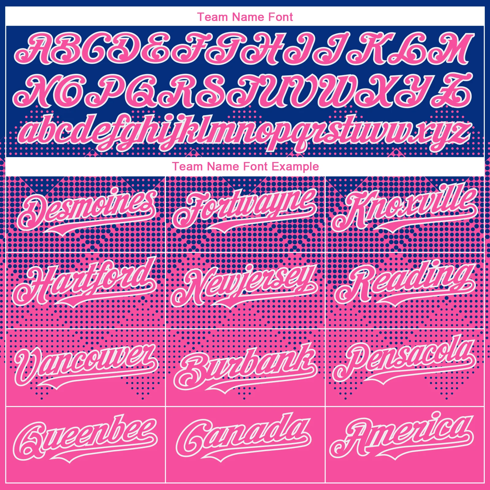 Custom Royal Pink-White Gradient Square Shape 3D Pattern Design Bomber Full-Snap Varsity Letterman Hoodie Jacket