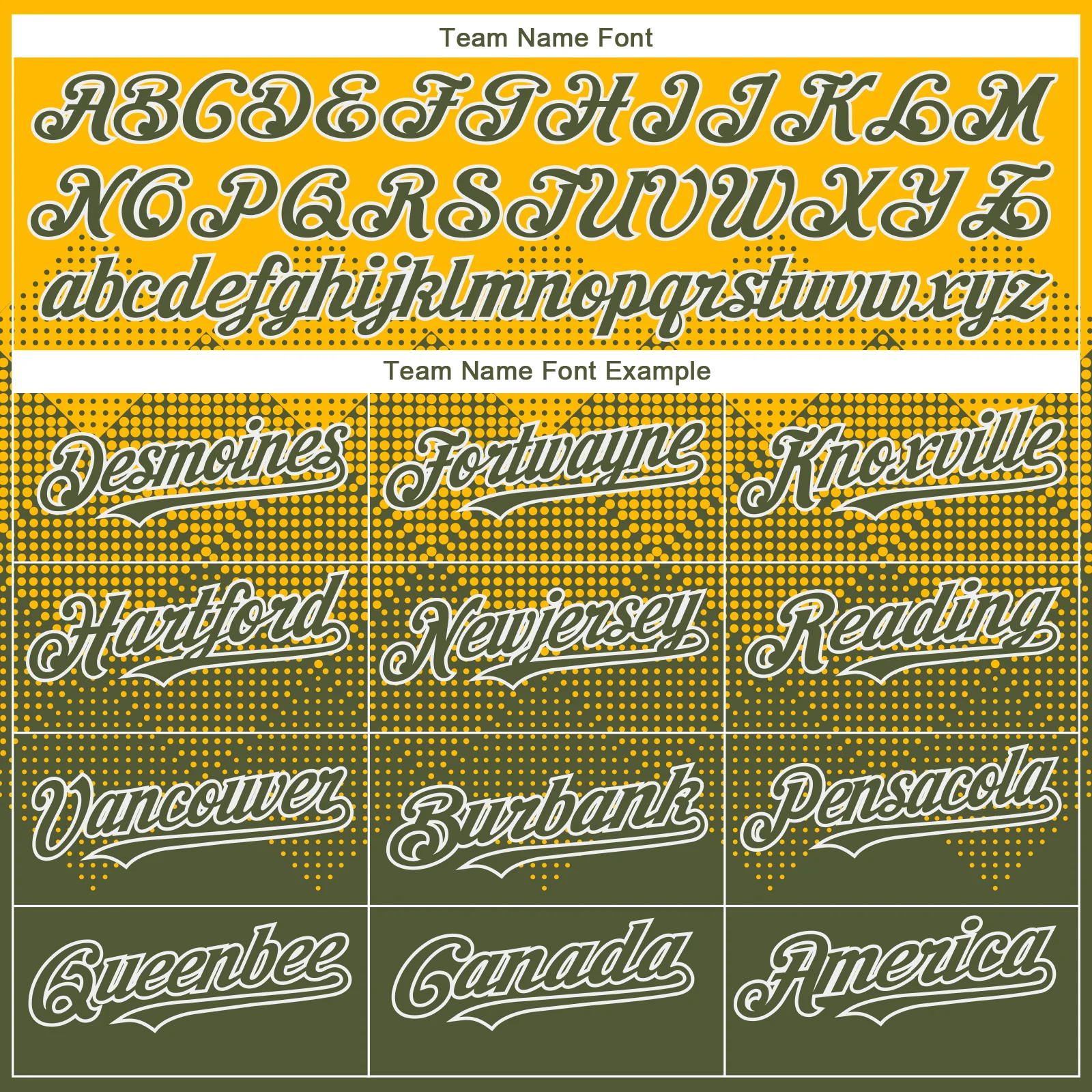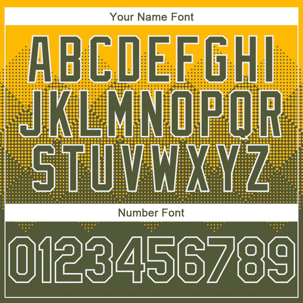 Custom Gold Olive-White Gradient Square Shape 3D Pattern Design Bomber Full-Snap Varsity Letterman Hoodie Jacket