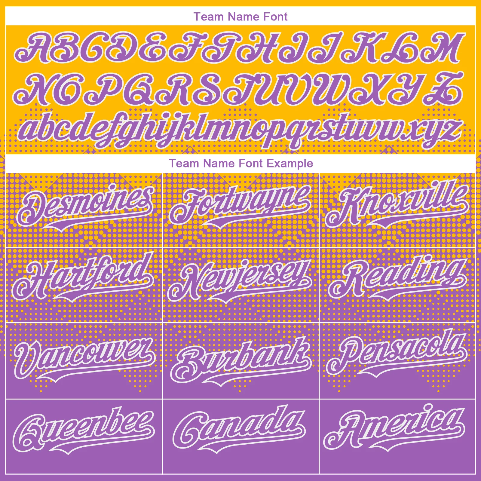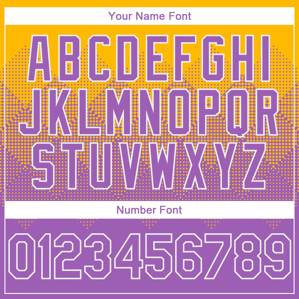 Custom Gold Medium Purple-White Gradient Square Shape 3D Pattern Design Bomber Full-Snap Varsity Letterman Hoodie Jacket
