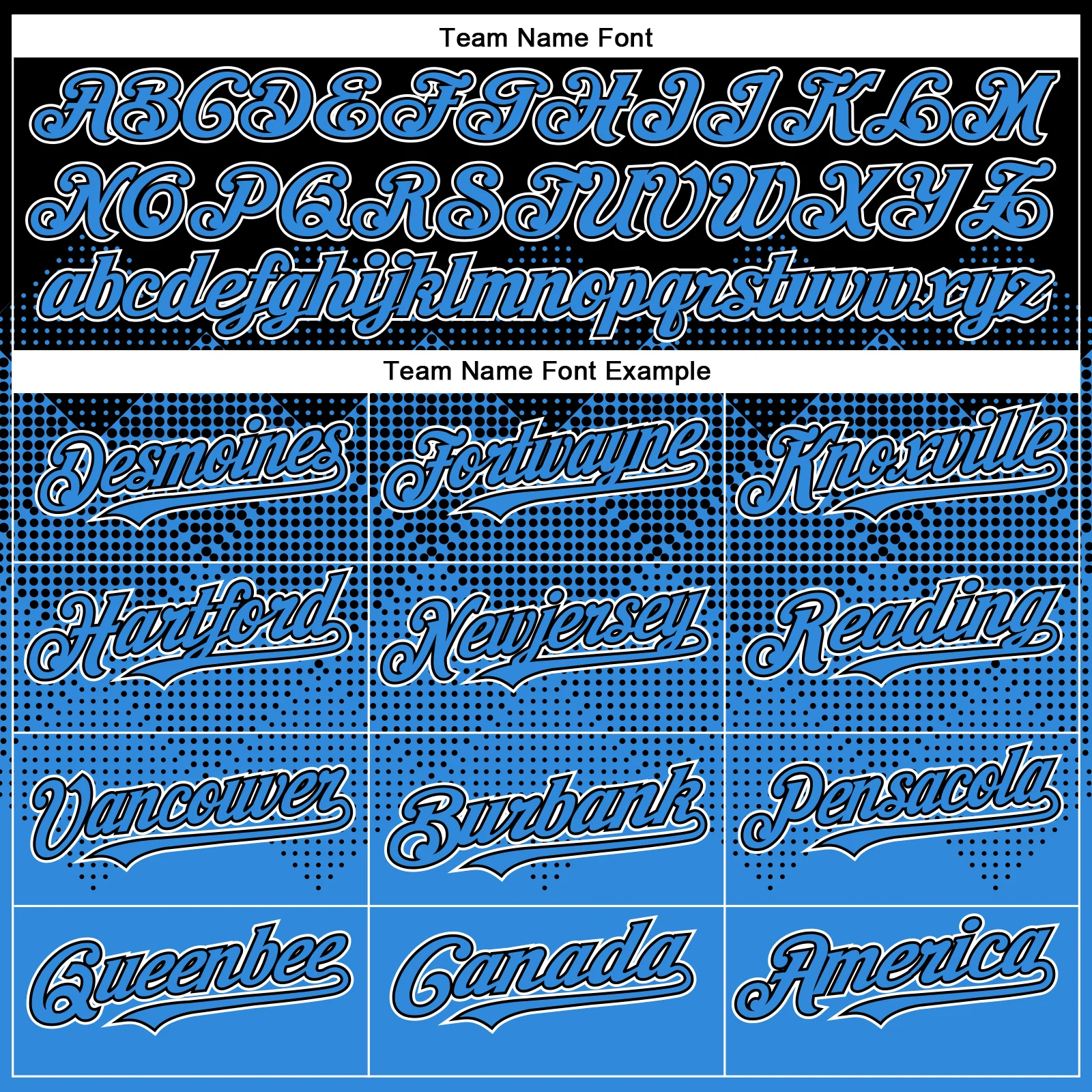 Custom Black Powder Blue-White Gradient Square Shape 3D Pattern Design Bomber Full-Snap Varsity Letterman Hoodie Jacket