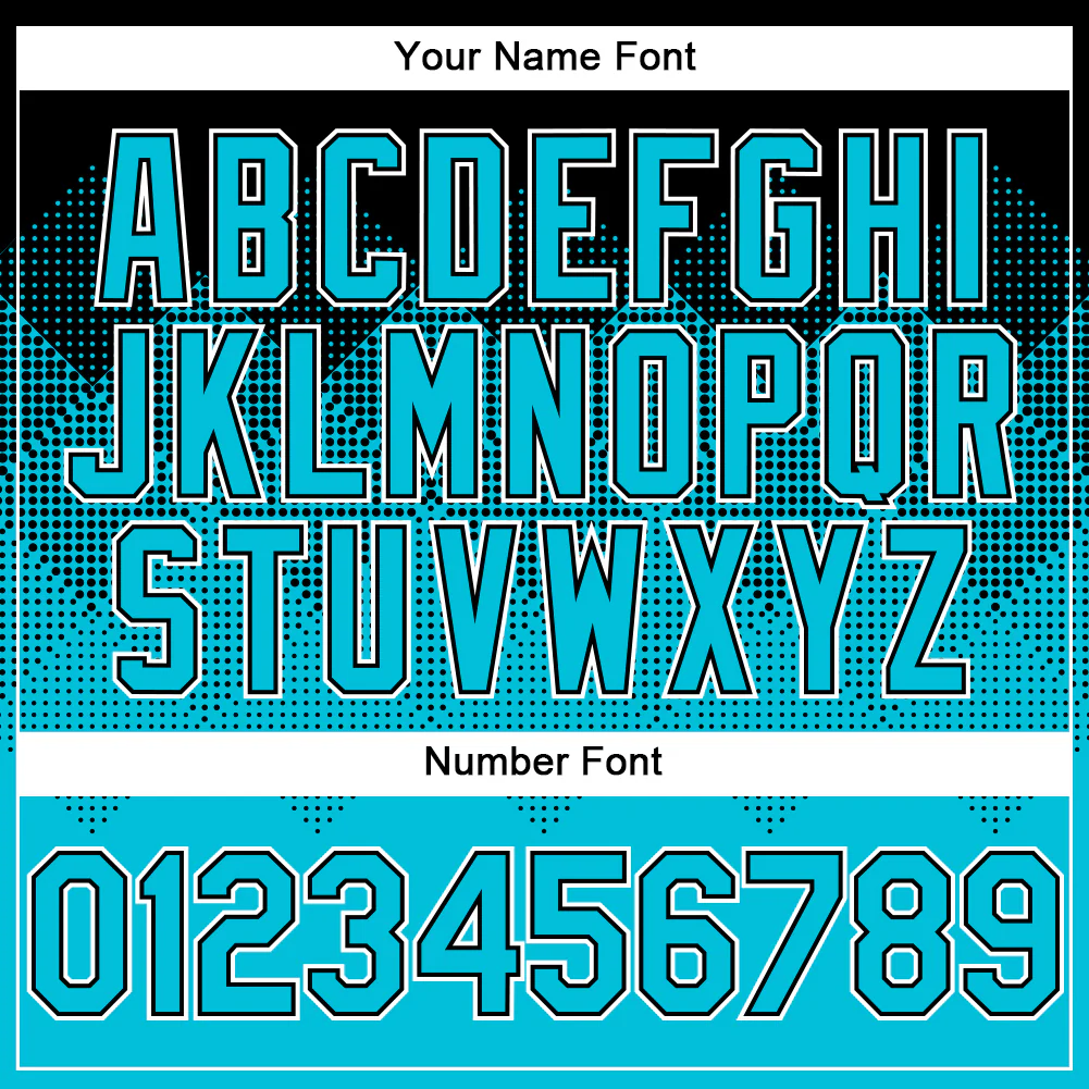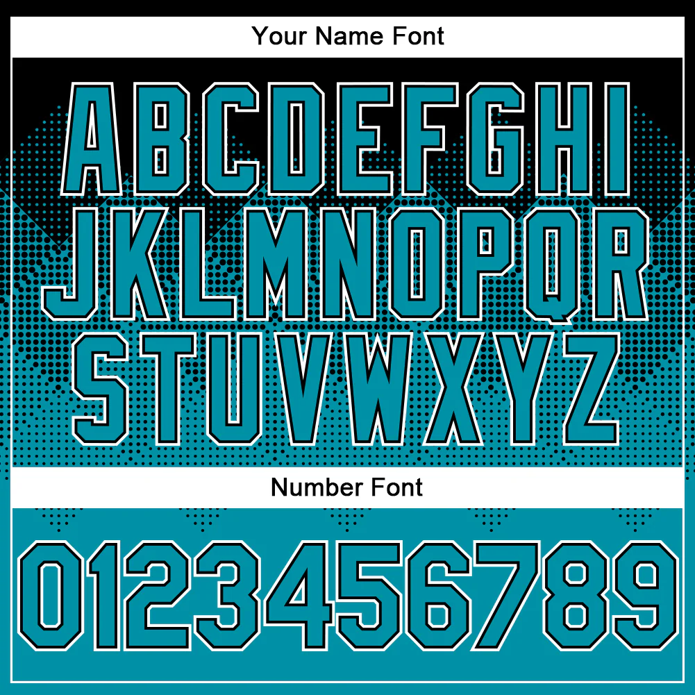 Custom Black Teal-White Gradient Square Shape 3D Pattern Design Bomber Full-Snap Varsity Letterman Hoodie Jacket