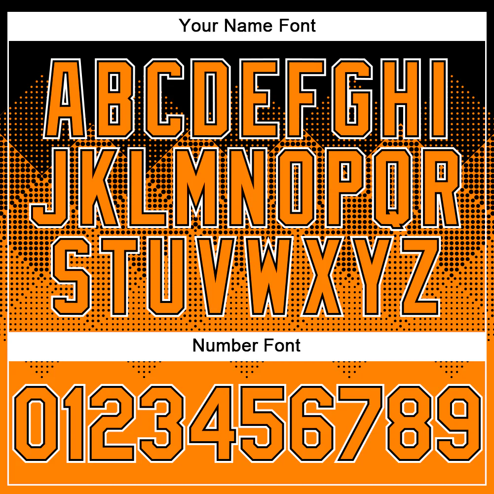 Custom Black Bay Orange-White Gradient Square Shape 3D Pattern Design Bomber Full-Snap Varsity Letterman Hoodie Jacket