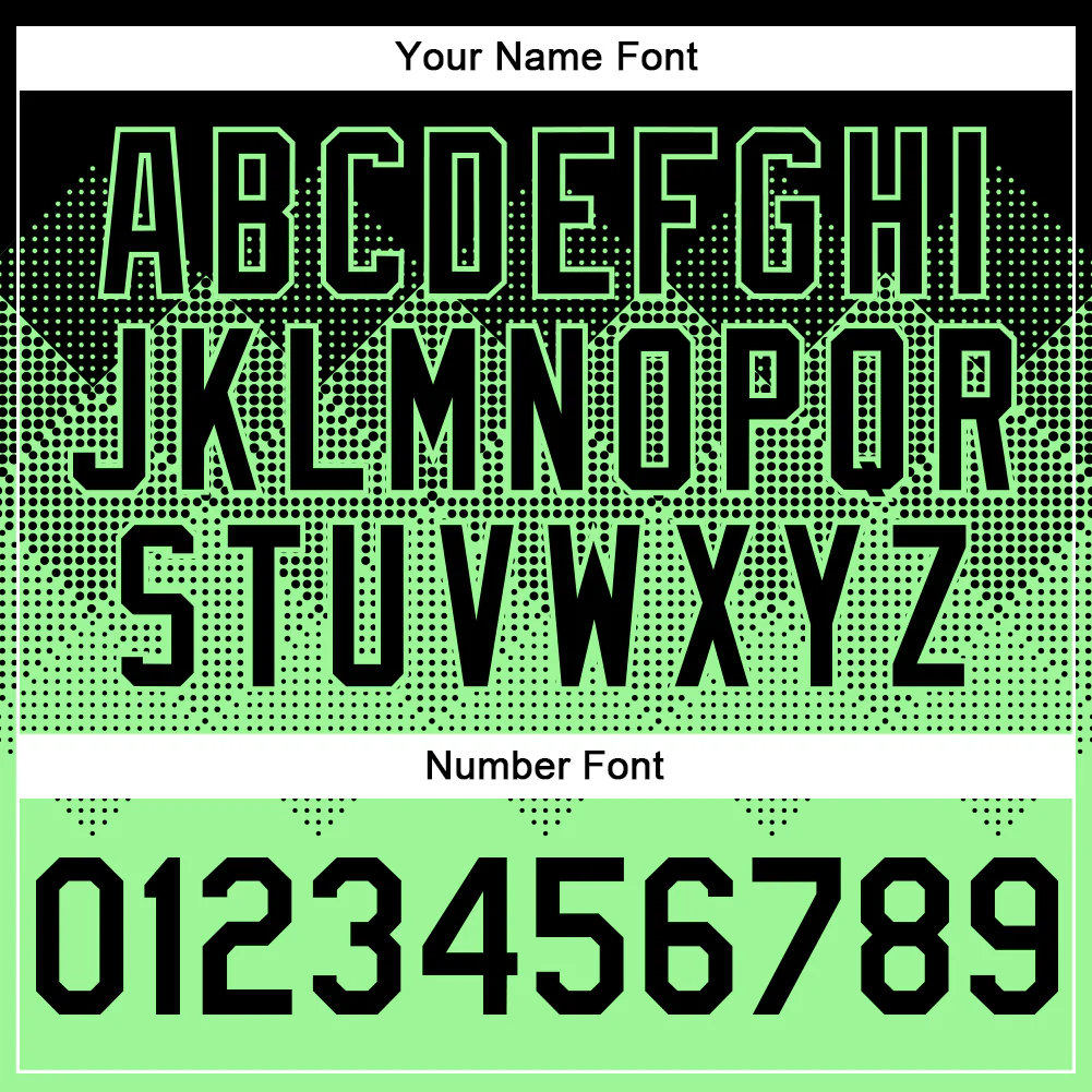 Custom Black Pea Green-White Gradient Square Shape 3D Pattern Design Bomber Full-Snap Varsity Letterman Hoodie Jacket
