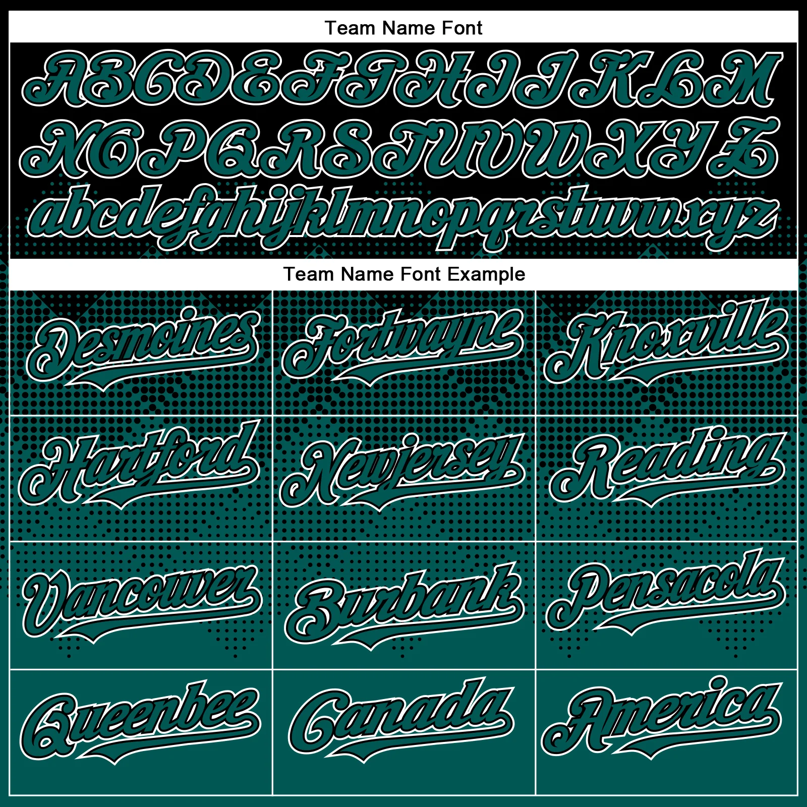 Custom Black Midnight Green-White Gradient Square Shape 3D Pattern Design Bomber Full-Snap Varsity Letterman Hoodie Jacket