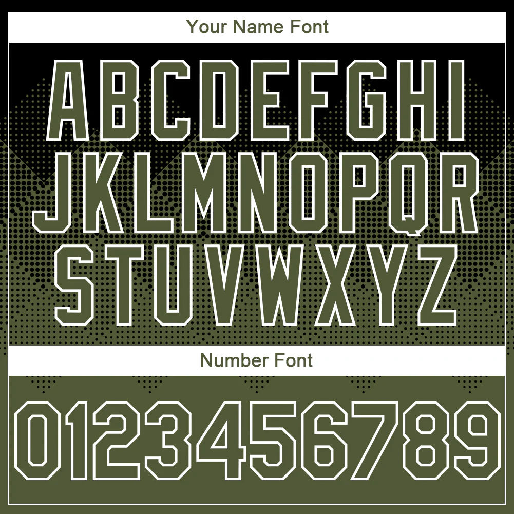 Custom Black Olive-White Gradient Square Shape 3D Pattern Design Bomber Full-Snap Varsity Letterman Hoodie Jacket