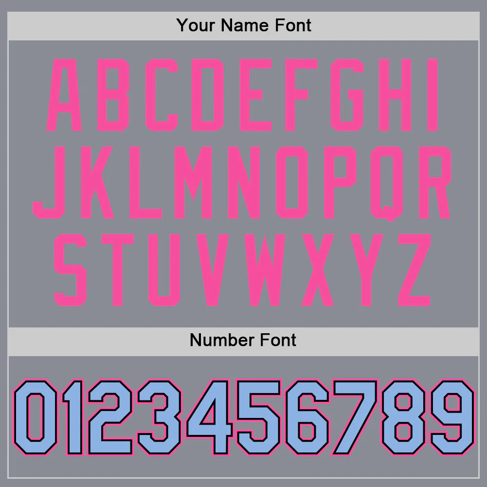 Custom Gray Sky Blue Black-Pink Bomber Full-Snap Varsity Letterman Hoodie Jacket