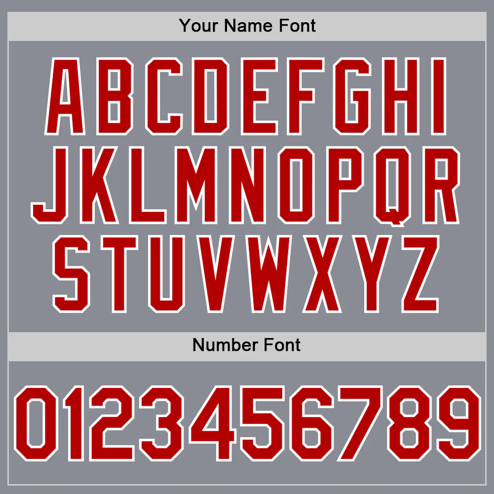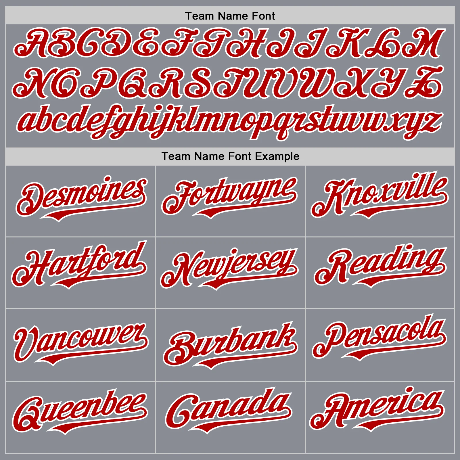 Custom Gray Red-White Bomber Full-Snap Varsity Letterman Hoodie Jacket