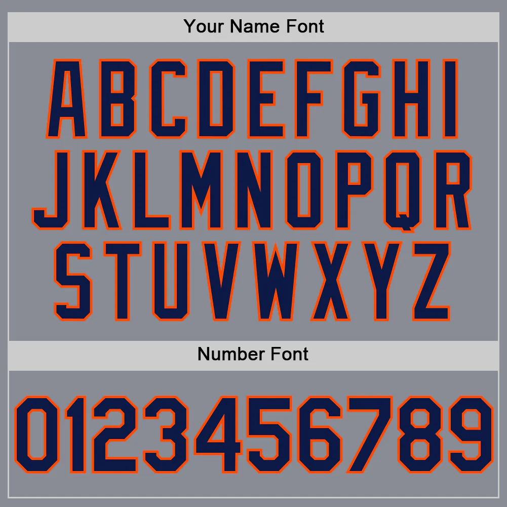 Custom Gray Navy-Orange Bomber Full-Snap Varsity Letterman Hoodie Jacket