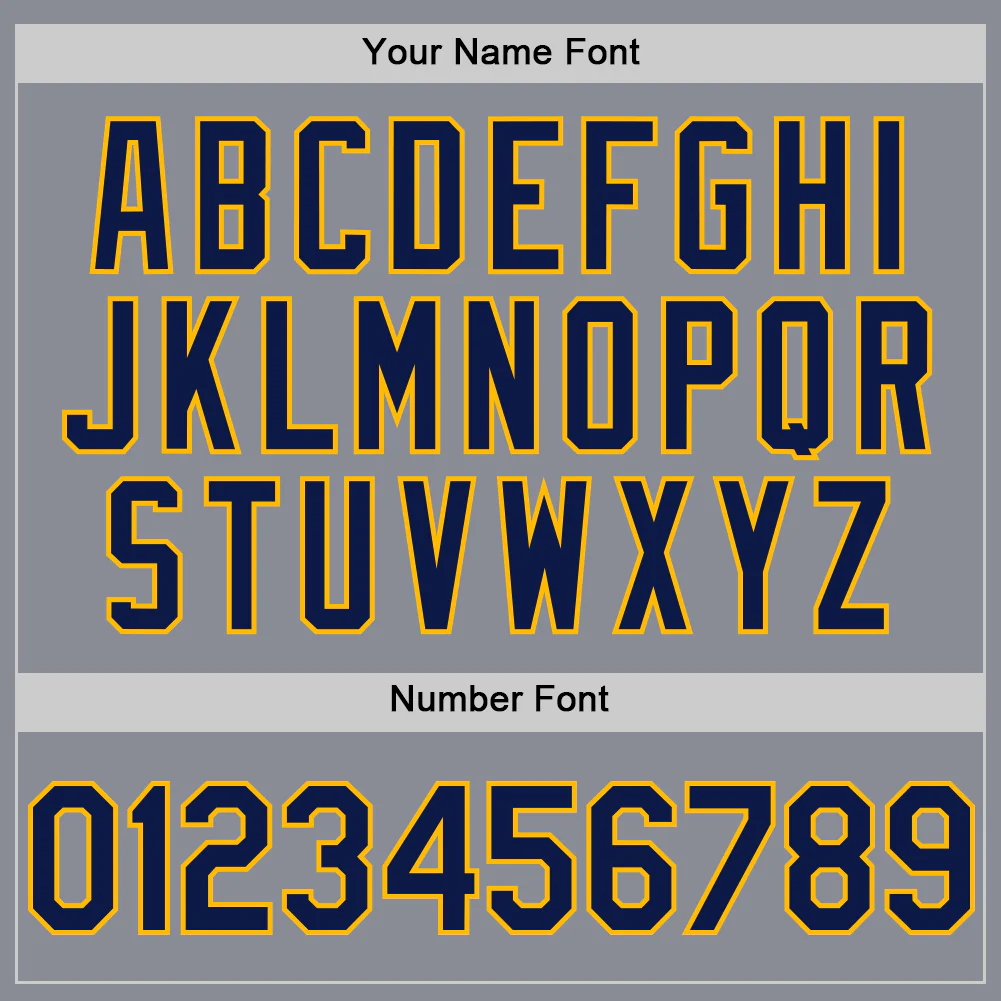Custom Gray Navy-Gold Bomber Full-Snap Varsity Letterman Hoodie Jacket