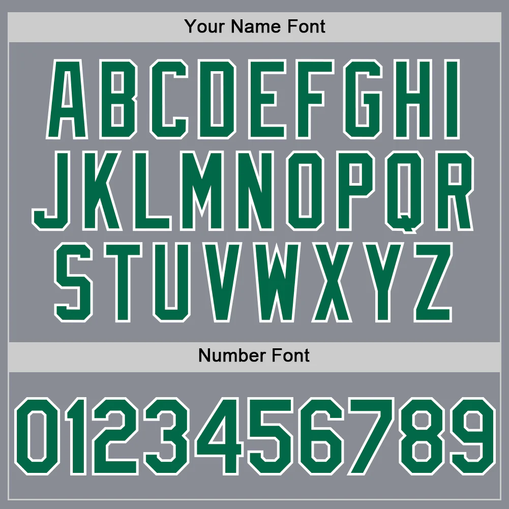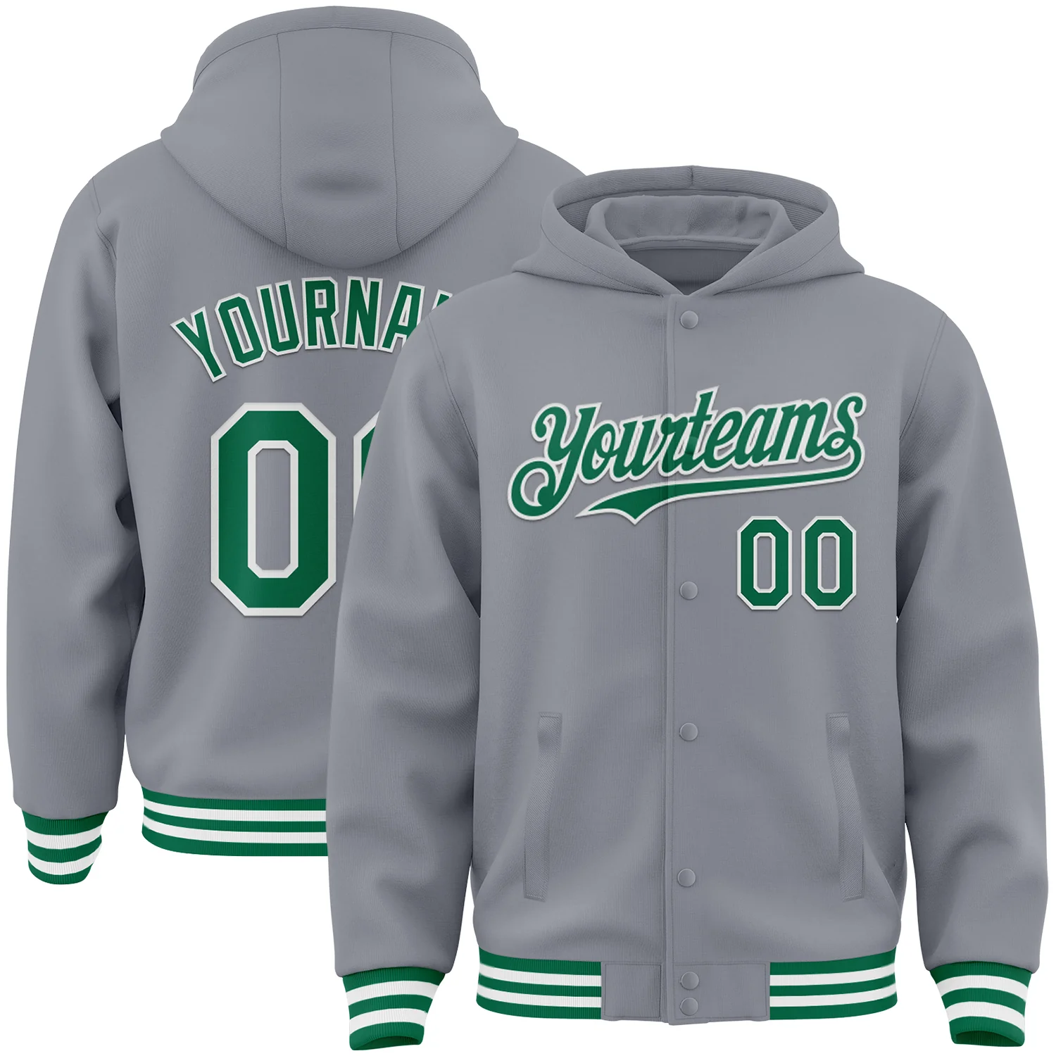 Custom Gray Kelly Green-White Bomber Full-Snap Varsity Letterman Hoodie Jacket
