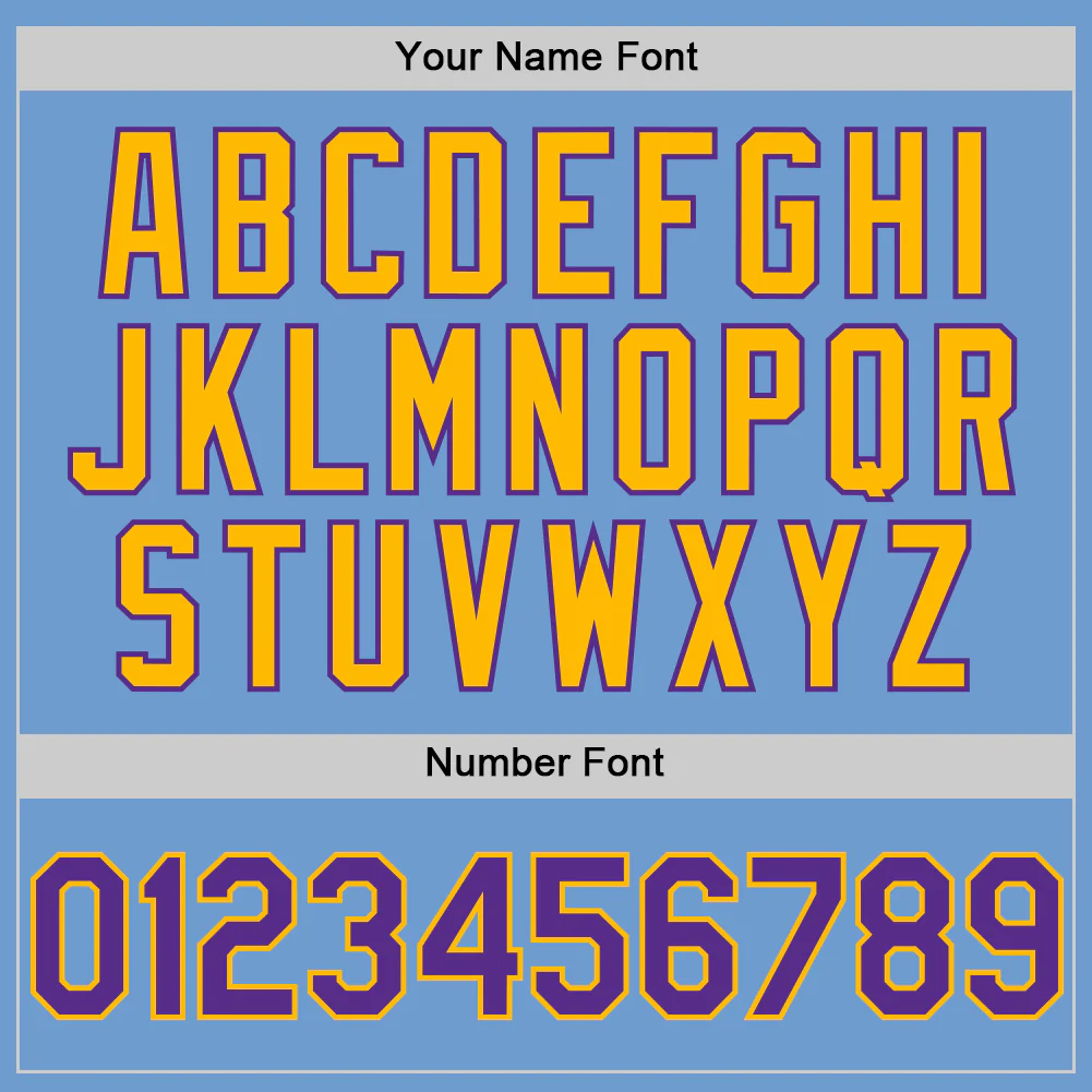 Custom Light Blue Purple-Gold Bomber Full-Snap Varsity Letterman Two Tone Hoodie Jacket