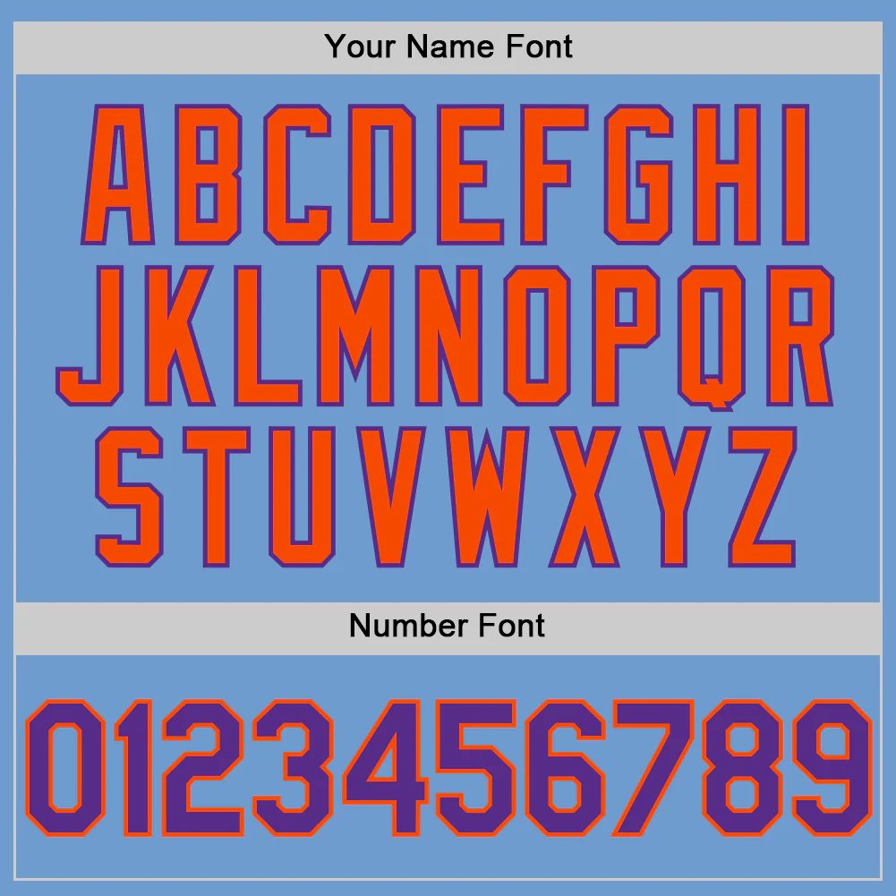 Custom Light Blue Purple-Orange Bomber Full-Snap Varsity Letterman Two Tone Hoodie Jacket