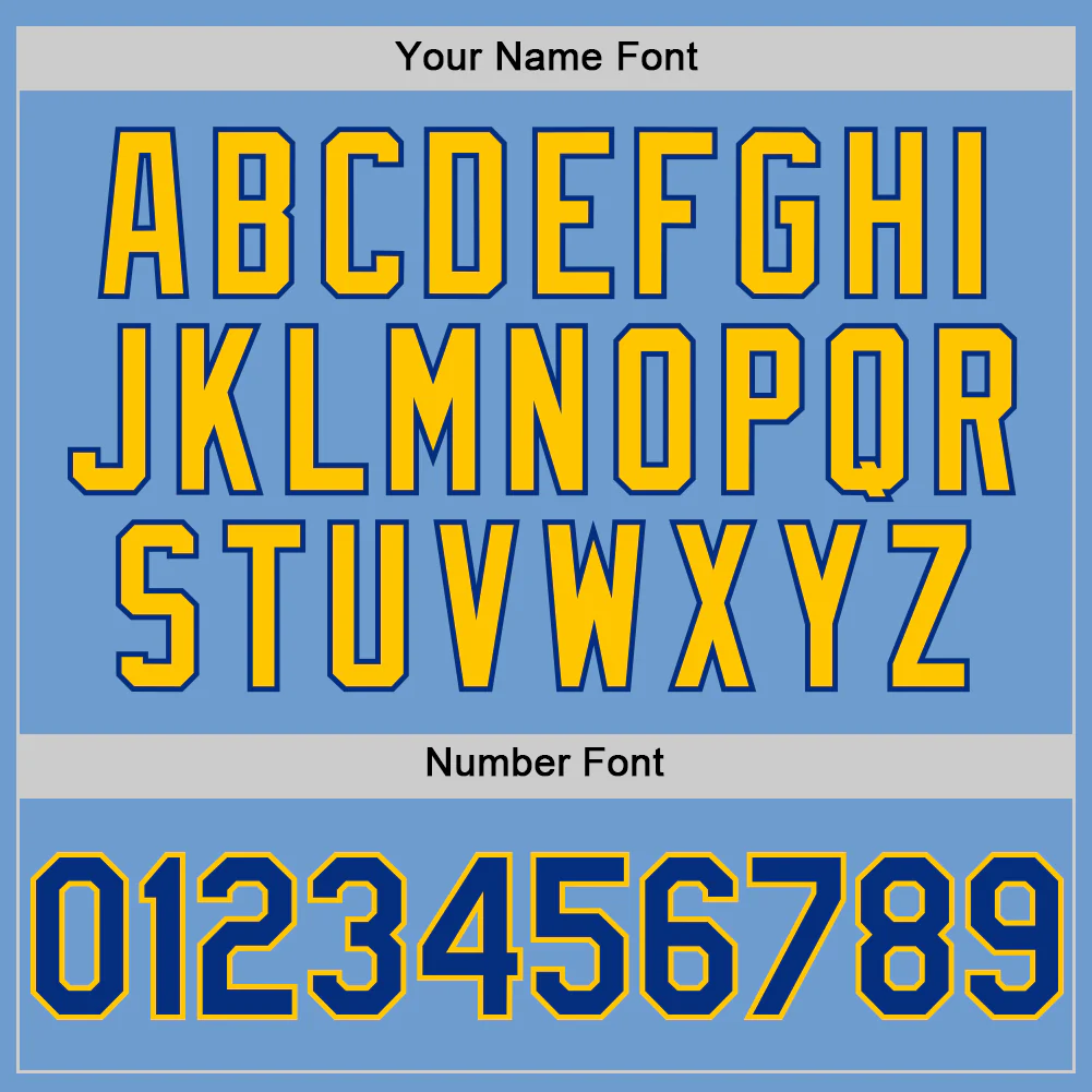Custom Light Blue Royal-Yellow Bomber Full-Snap Varsity Letterman Two Tone Hoodie Jacket