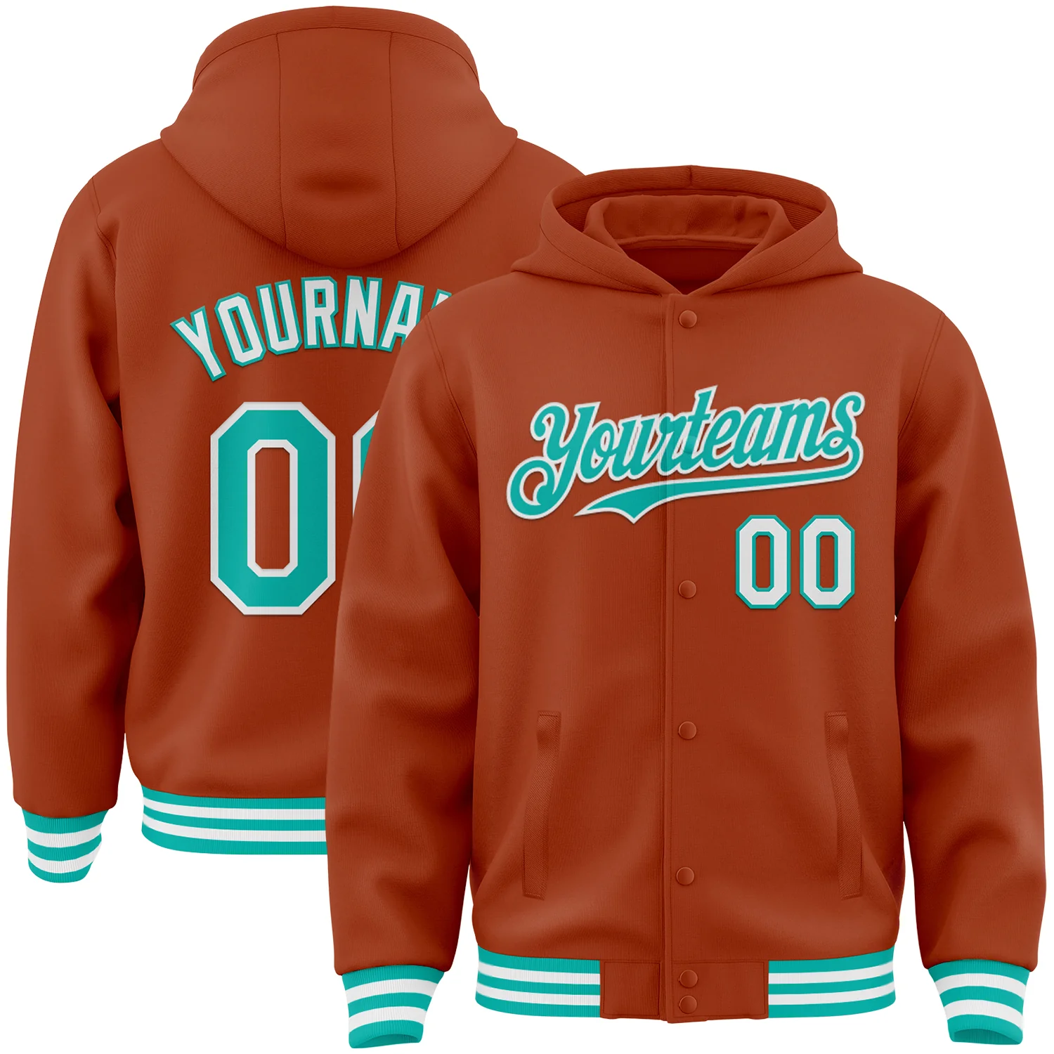 Custom Texas Orange Aqua-White Bomber Full-Snap Varsity Letterman Hoodie Jacket