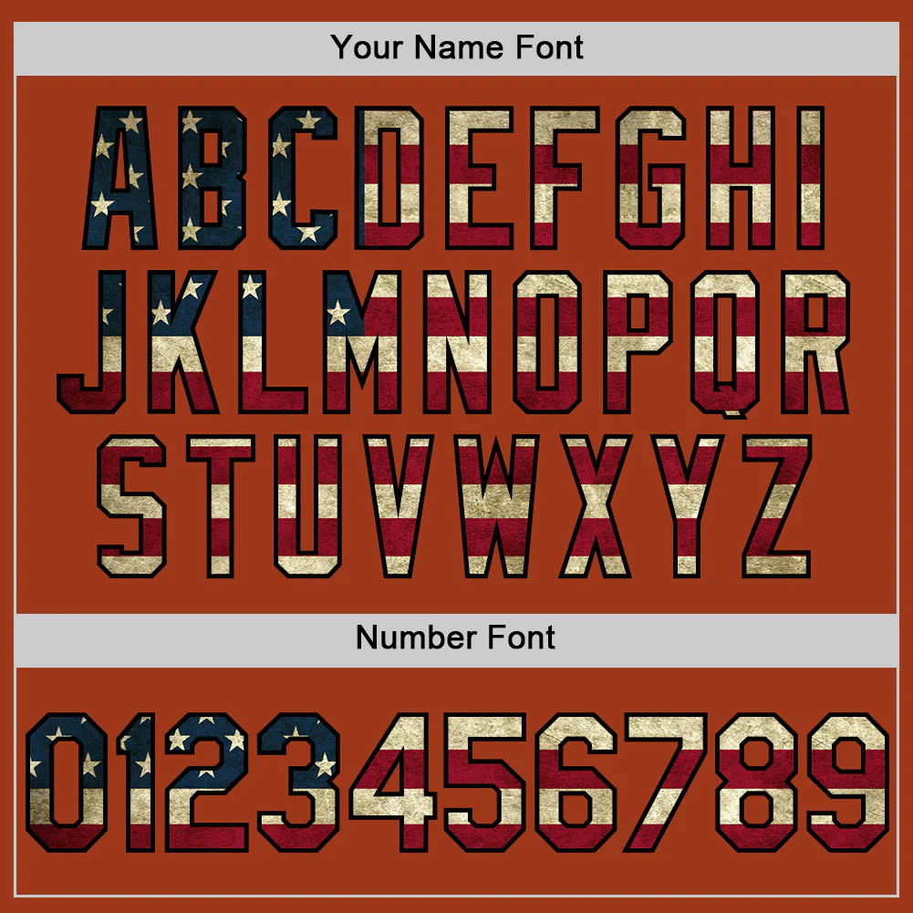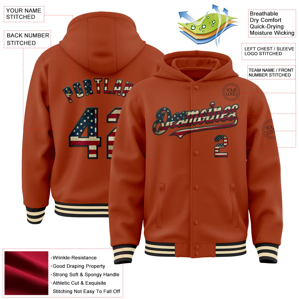 Custom Texas Orange Vintage USA Flag Black-Cream Bomber Full-Snap Varsity Letterman Hoodie Jacket