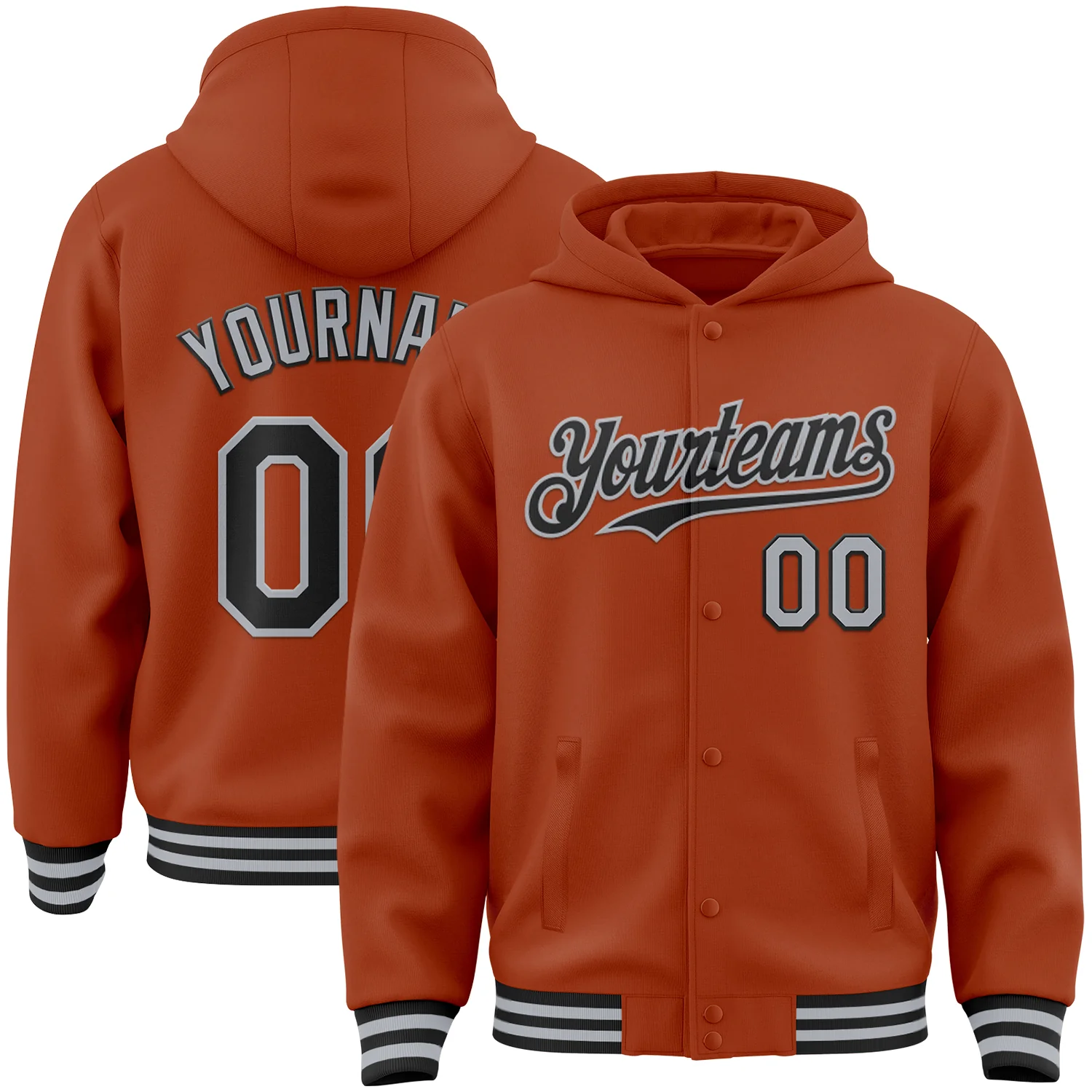 Custom Texas Orange Black-Gray Bomber Full-Snap Varsity Letterman Hoodie Jacket