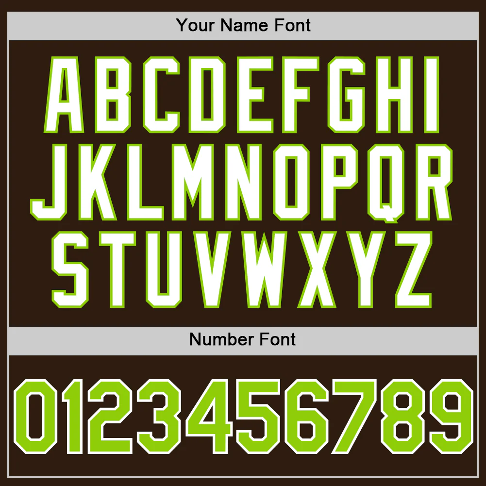 Custom Brown Neon Green-White Bomber Full-Snap Varsity Letterman Hoodie Jacket