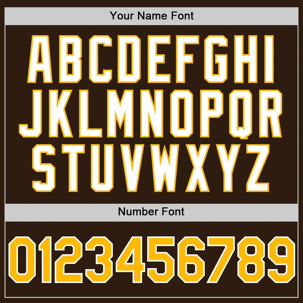 Custom Brown Gold-White Bomber Full-Snap Varsity Letterman Hoodie Jacket