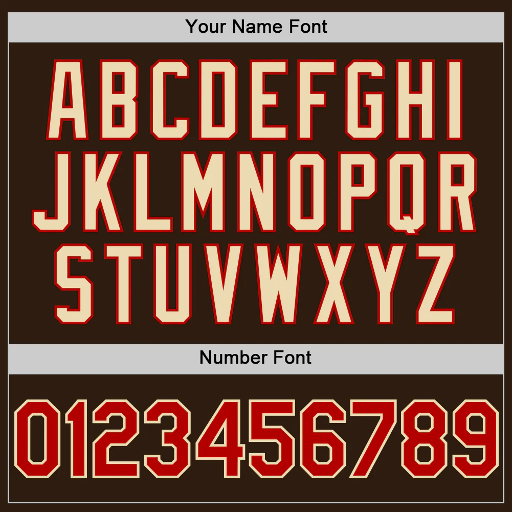 Custom Brown Red-Cream Bomber Full-Snap Varsity Letterman Hoodie Jacket