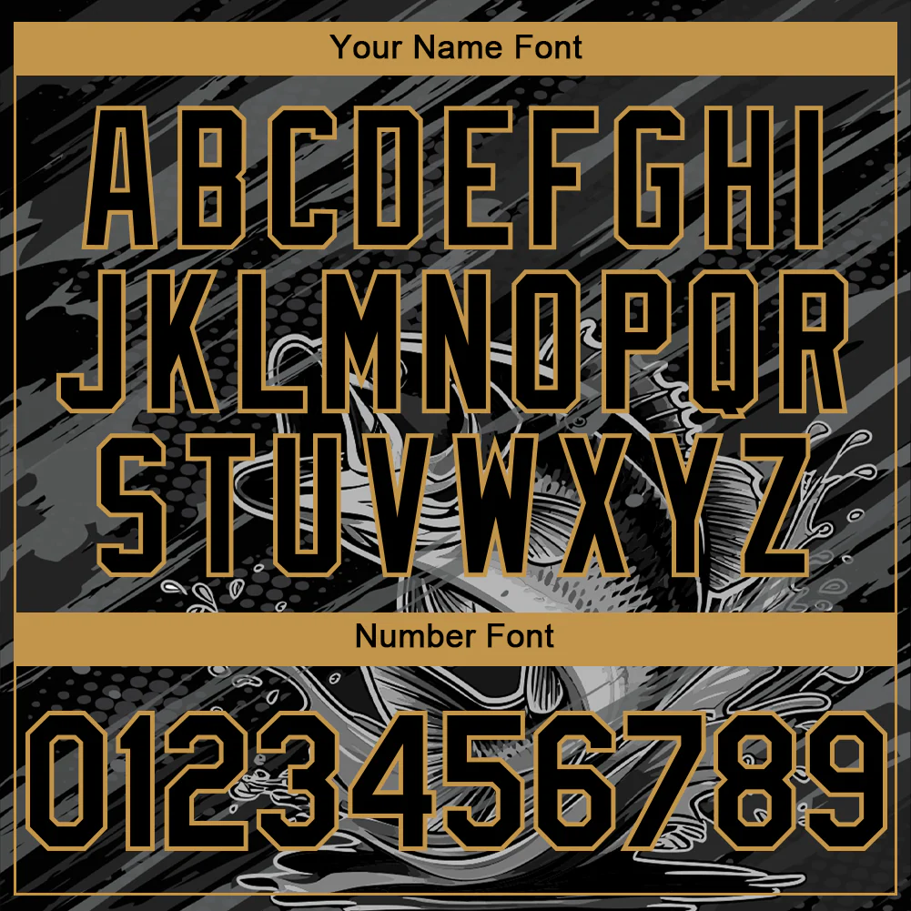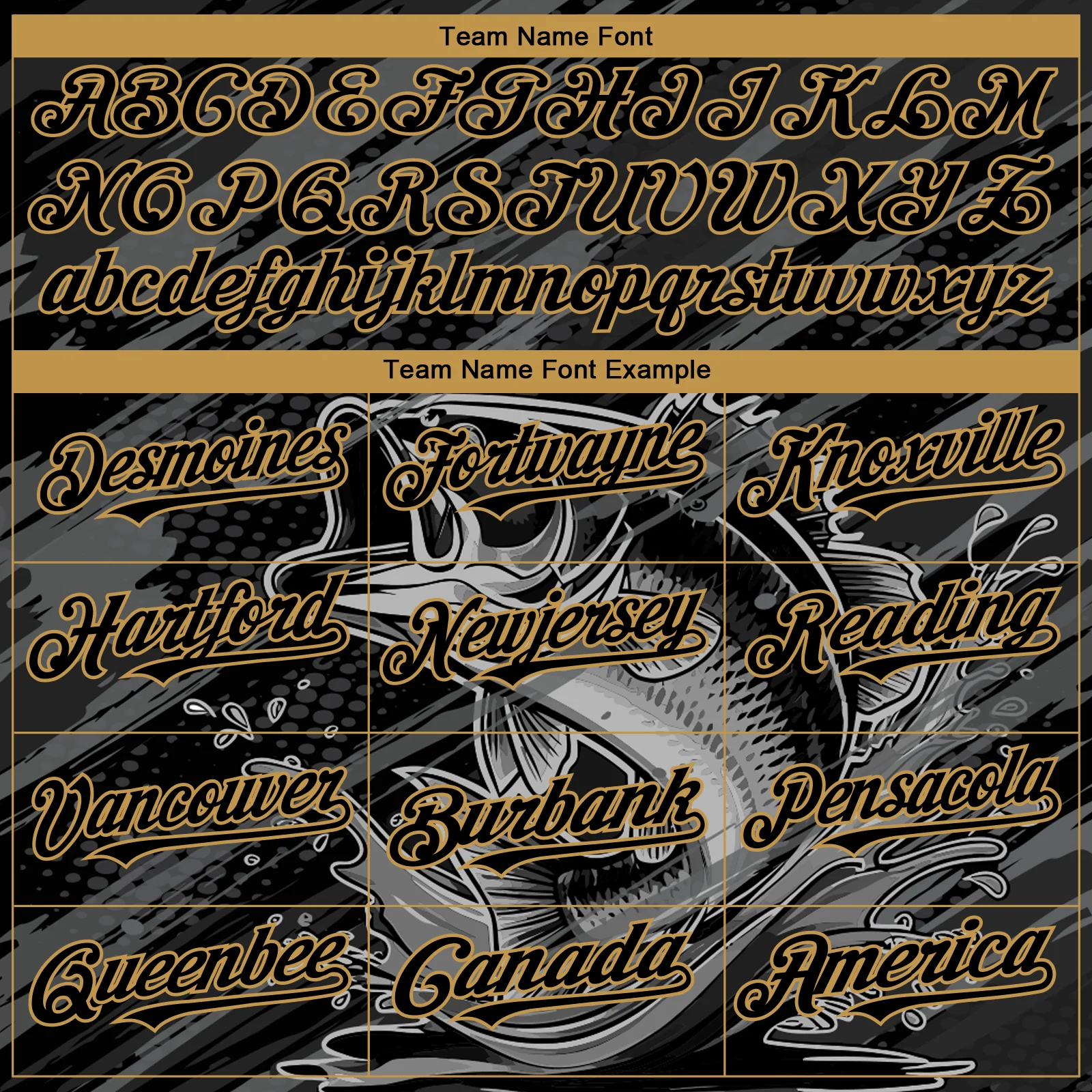 Custom Black Old Gold Largemouth Bass Fish Fishing 3D Bomber Full-Snap Varsity Letterman Hoodie Jacket
