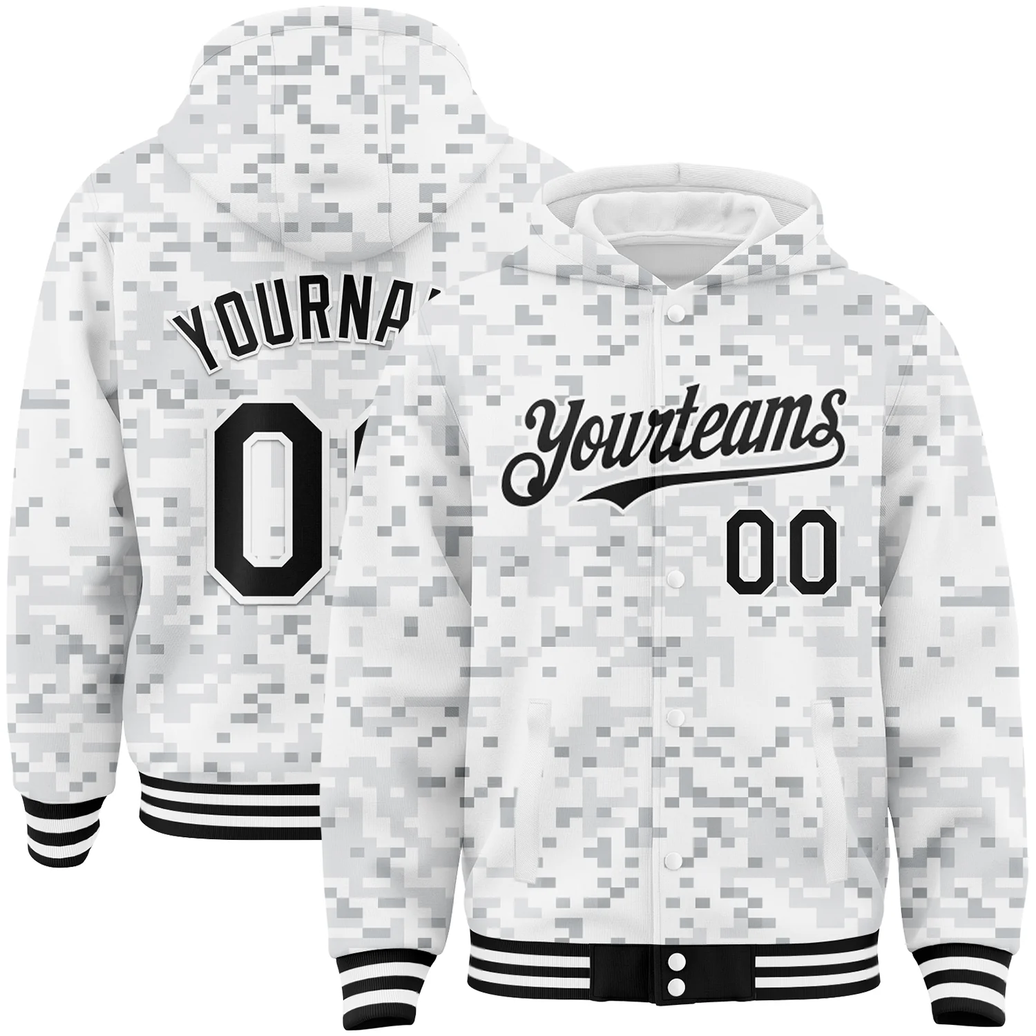 Custom Camo Black-White Arctic Camouflage 3D Bomber Full-Snap Varsity Letterman Salute To Service Hoodie Jacket