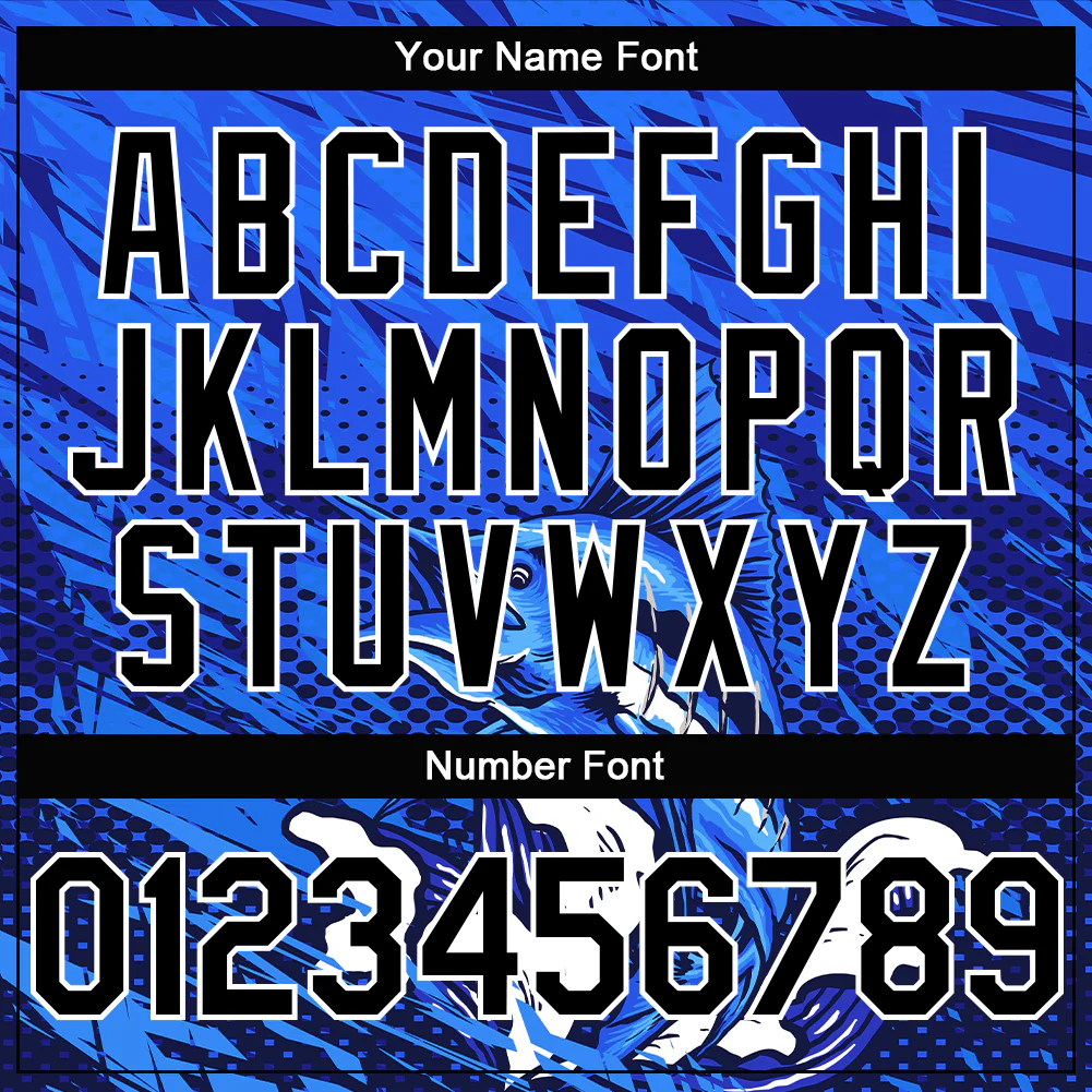 Custom Royal Black-White Marlin Fish Fishing 3D Bomber Full-Snap Varsity Letterman Hoodie Jacket